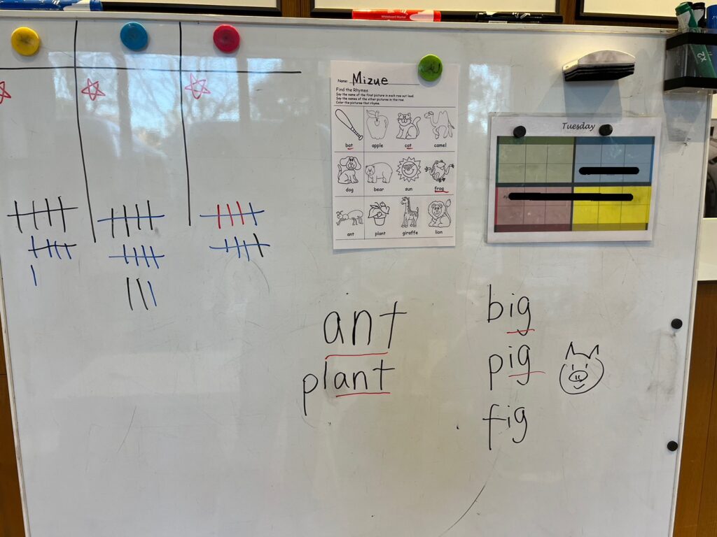 など単語の最後の音が同じものを選ぶワークシートにトライ!