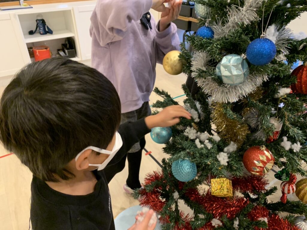 (一緒にクリスマスツリーの飾り付けをしよう!)
