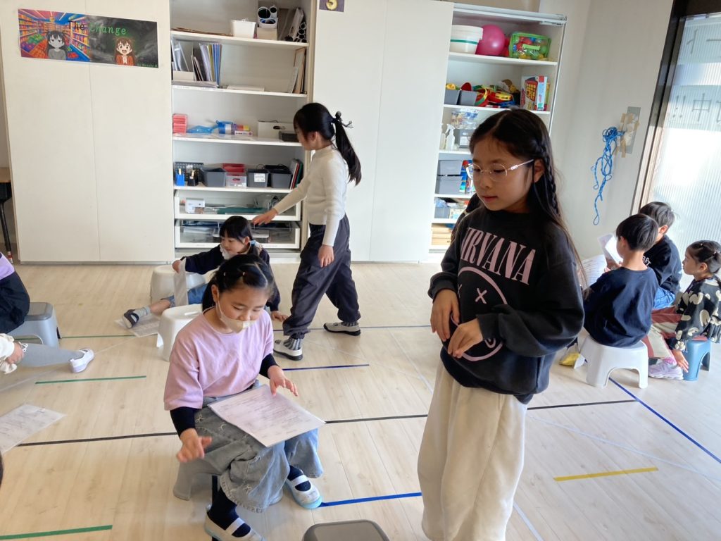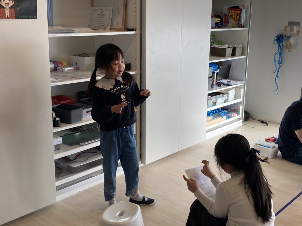 水曜日になると今日が練習ウィークの2日目に突入する生徒も増えてきて、必然的に練習のギアも上がってきます!!すると、先生のサポート無しでも練習にチャレンジしたいと思う生徒も増えてきます!!生徒達は自分と同じストーリーで発表会に臨む人たちとグループになって、互いにアドバイスし合う等の切磋琢磨をしました!!頑張ったみんなにはご褒美のゲームタイムを与えて、締めに自分のパフォーマンスに自信にある生徒は生徒全員の前でミニ発表会を行い、起承転結が素晴らしい1日となりました!!