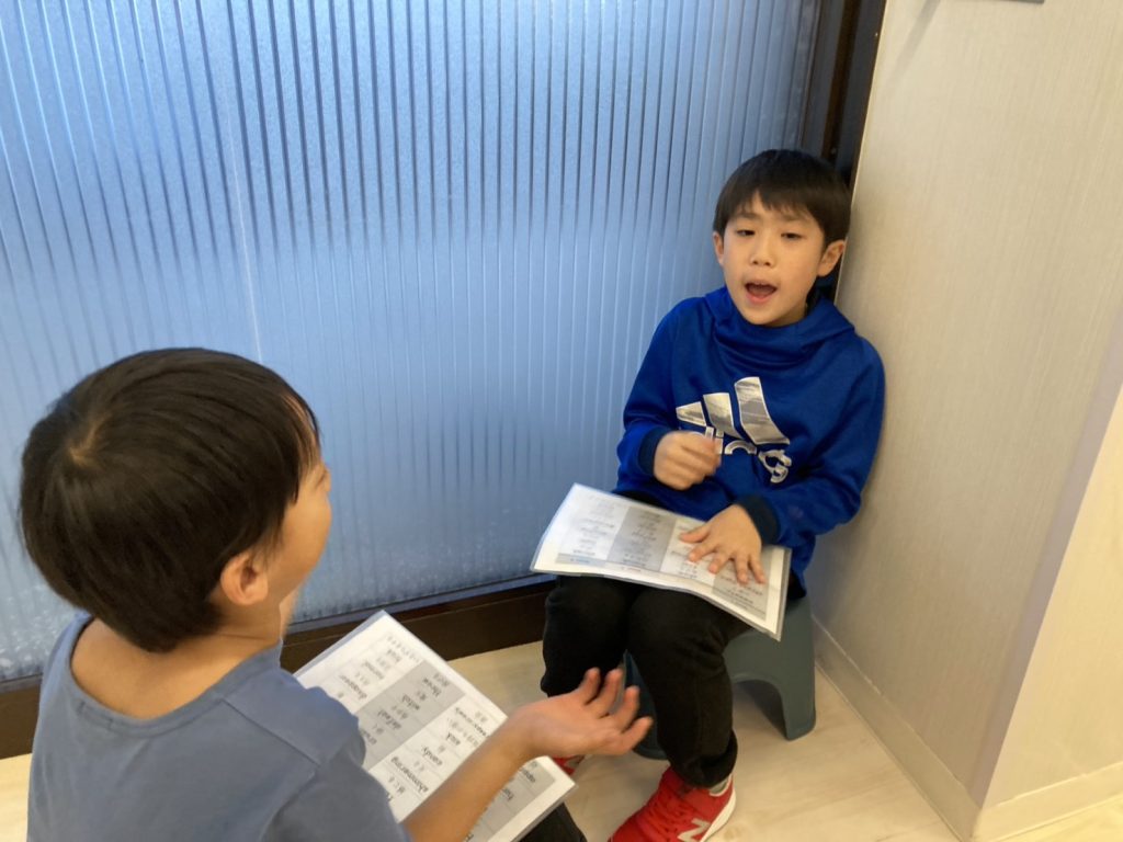 練習続きの毎日ですが、キッズパスポートではそんな日々の中でも楽しく、そしてチャンジングな環境を提供しています!!水曜日と同様に今日で練習ウィーク2日目の生徒がほとんどになったので、本番さながらような環境を作り、みんなの前でも発表してもらいました!!練習では上手くいった事も人々を前にしたら、固まってしまう場面もありましたが、先生含む、その場にいた全員の応援している眼差しでなんとかその緊張する場面を乗り切る生徒もおりました!!今日で練習ウィークおわりの生徒はお疲れ様でした!!