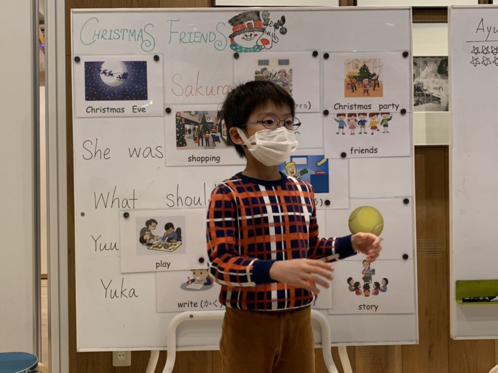 などの単語を練習して、クリスマスムードにみんなわくわくして見えました♪