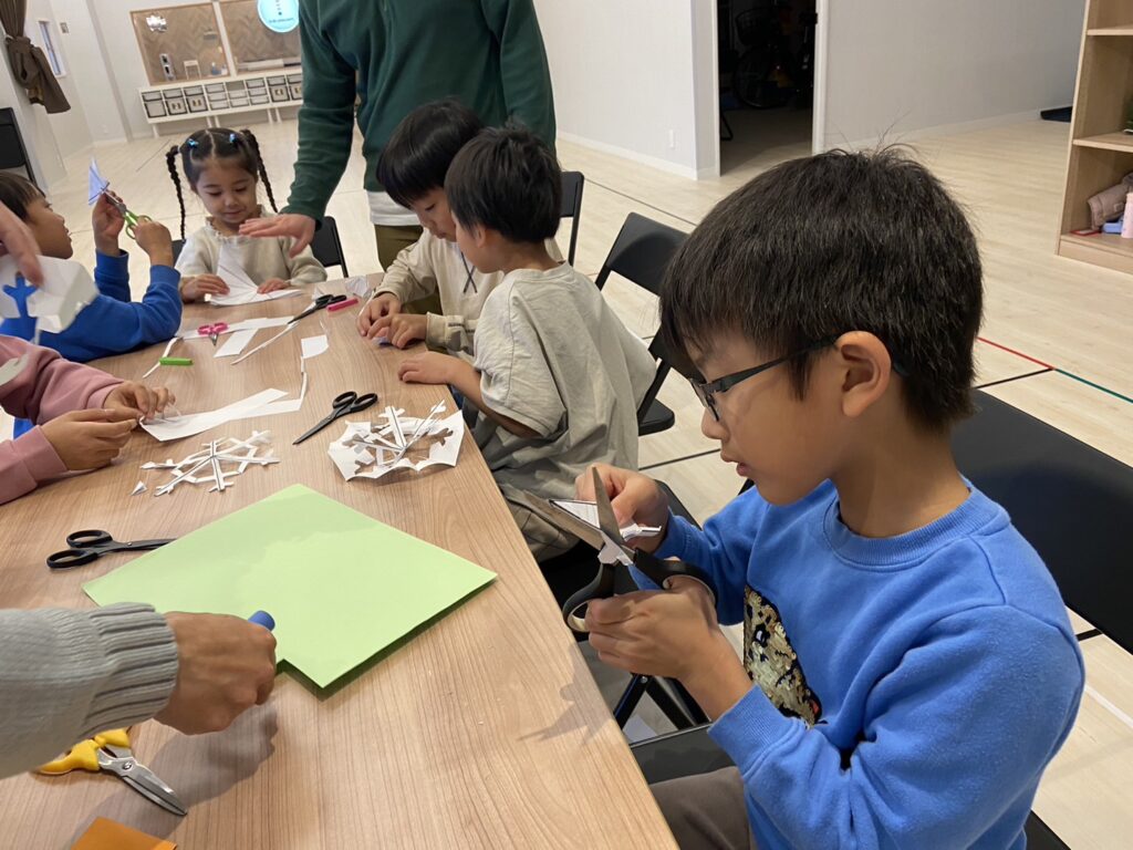 今日は早くこれた子たちから、クリスマスデコレーションを一緒に作りました♪