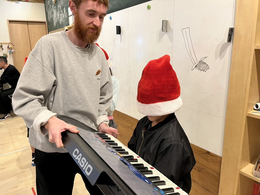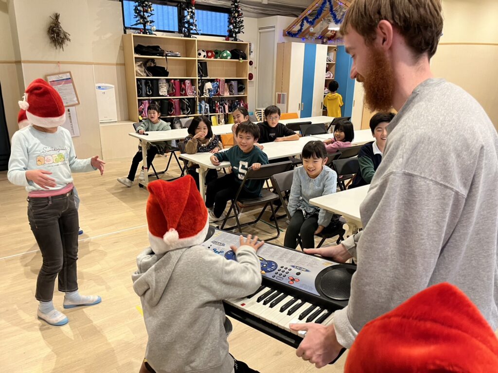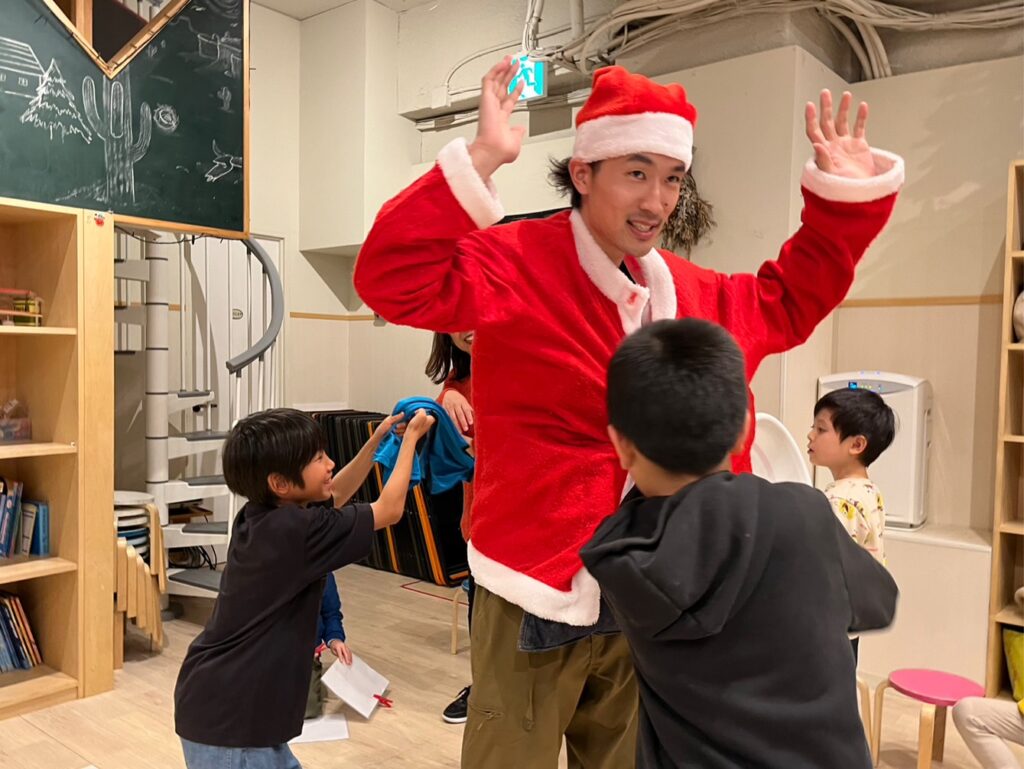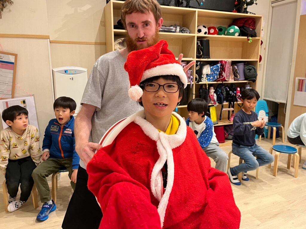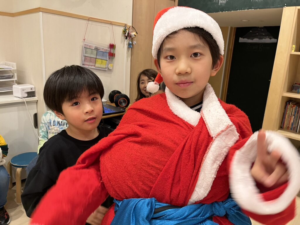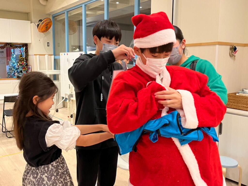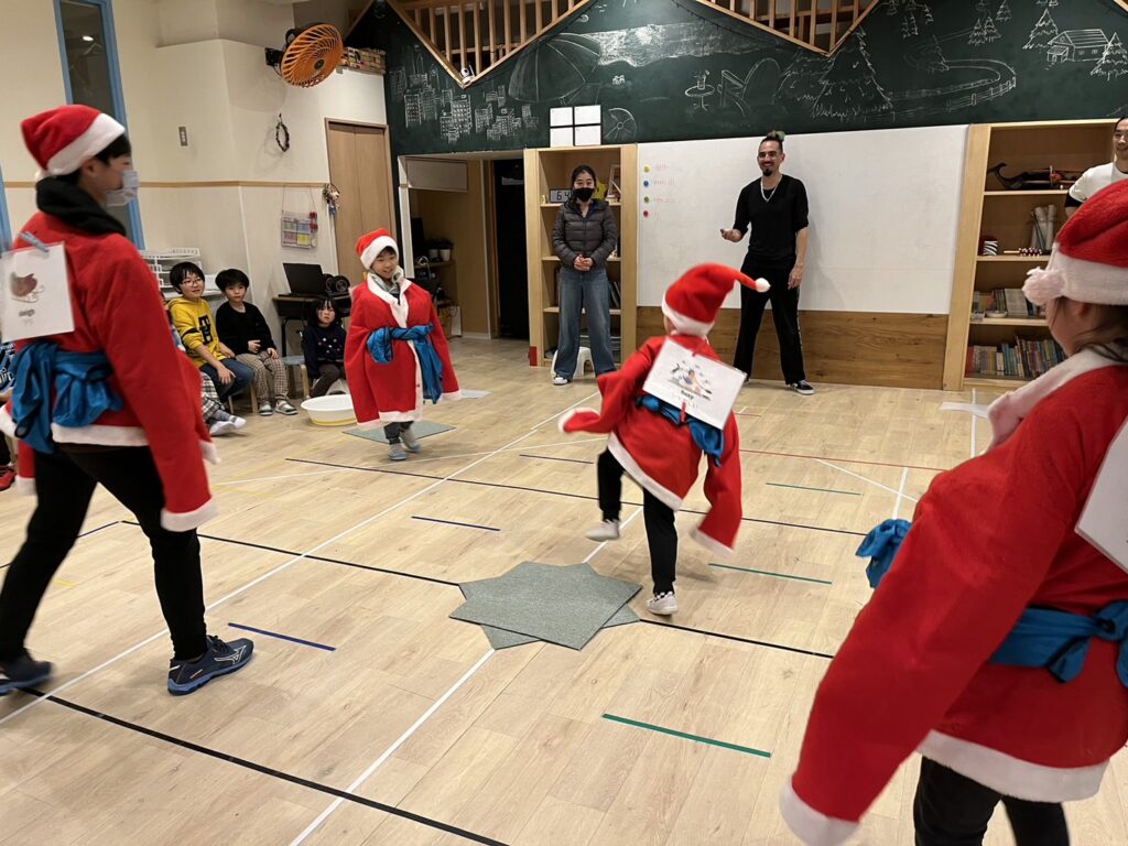 チームから代表が1人ずつ前にでてきてサンタハットを