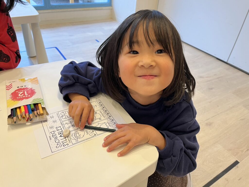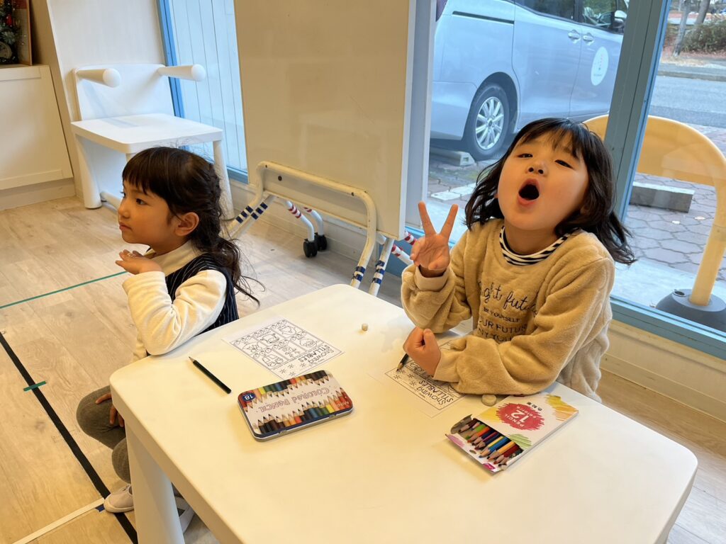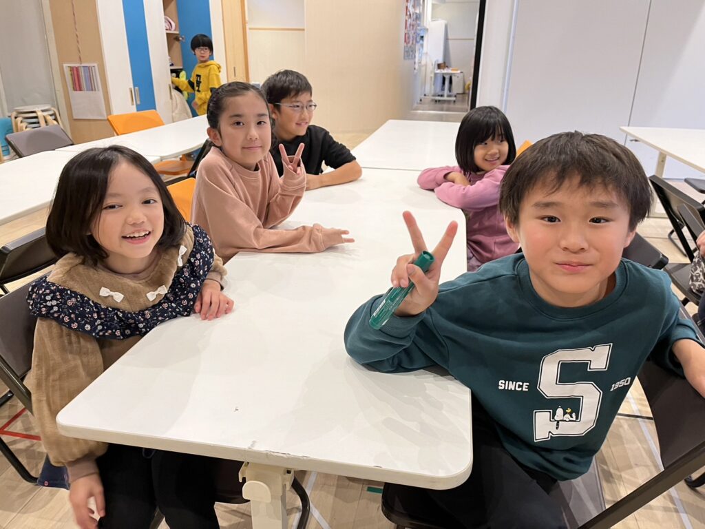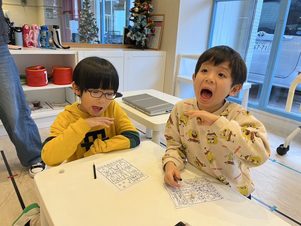 単語の音の数え方を、アゴに手を置いて数えるように練習していました