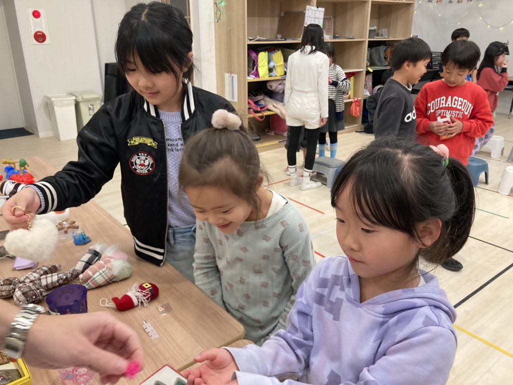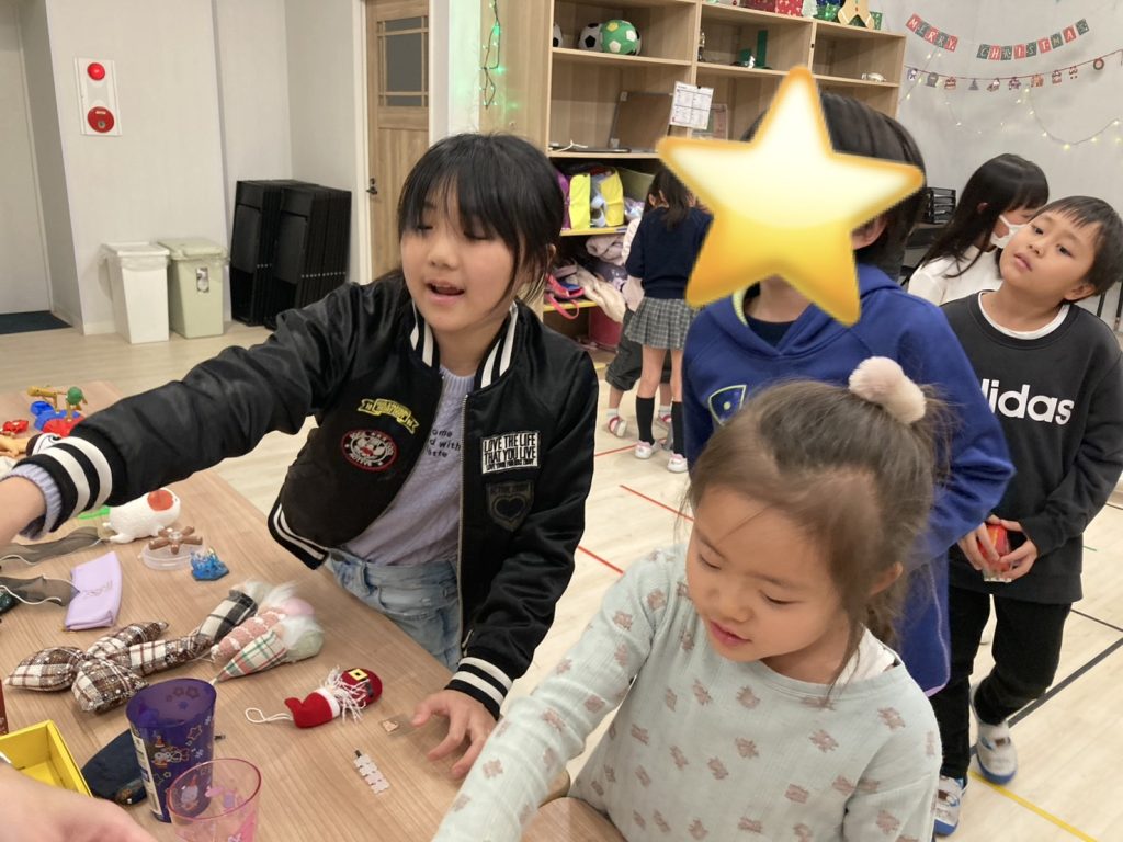 改めて、皆さま!!先週はストーリーの発表会お疲れ様でした!!今週からは先週の発表会を頑張って、貯めたポイントを使ってクリスマスショップでお買い物をするウィークとなっております!!ショップの中にはサンリオのグッズはもちろん、ポケモンのグッズもあったりと豪華景品が目白押しでした!!ショップが開店する前の商品たちがずらーっと並ぶ瞬間、生徒達のテンションはマックス状態になっていたので、これはいい写真が撮れそうだなって思い、先生たちは喜んでいる様をパシャリ!!勝った商品は大切に扱ってね!!
