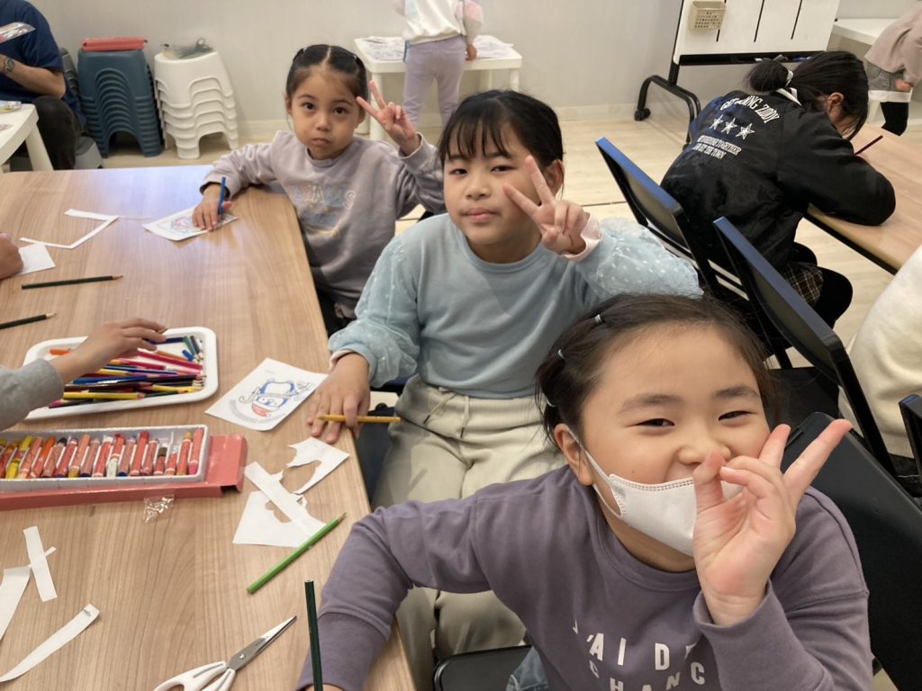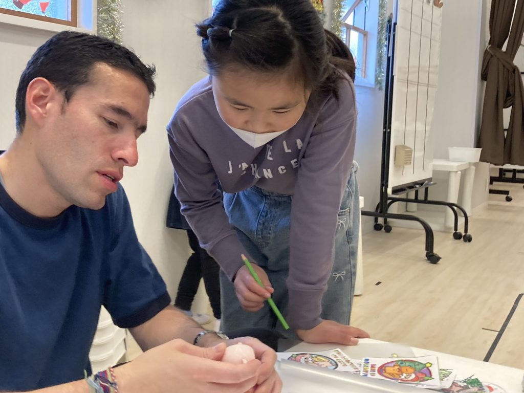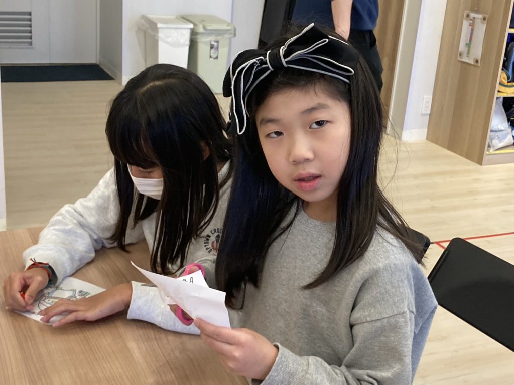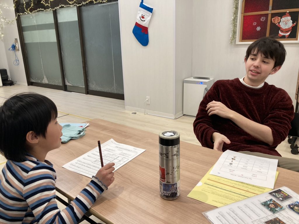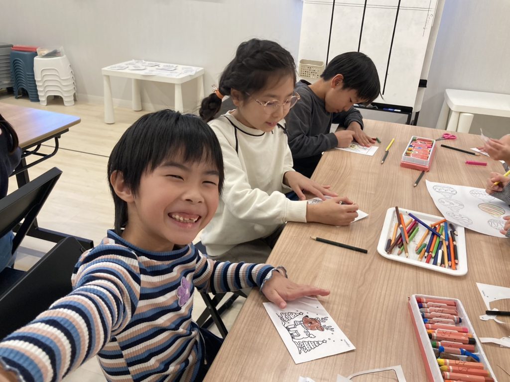 今週のワークショップはいつもと一味違いました!いつものワークショップ基本的に絵を描きながら~身体を動かしながら~等を行いながら新しい英単語を練習しているアクティビティなのですが、今週はクリスマスも近づいているとの事で、イラストや靴箱にもつけることができるデコレーション等を作りました!!ワークショップはキッズパスポートの一番最初に行うアクティビティではございますが、冬休みが近づいているとの事で早めにクラスが終わりキッズパスポートに来れる生徒が多かったので、みんなでエンジョイしながら作る事ができました!!!