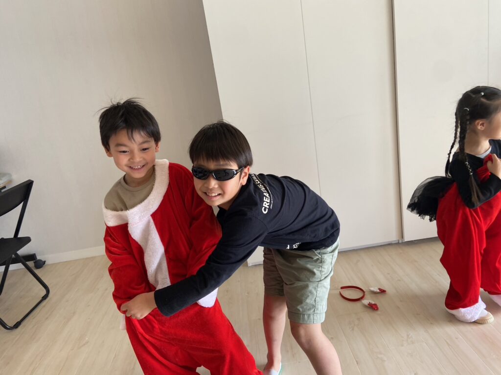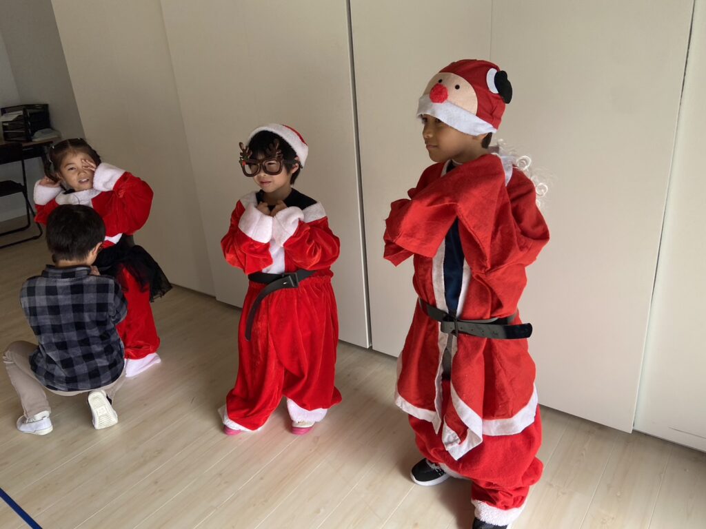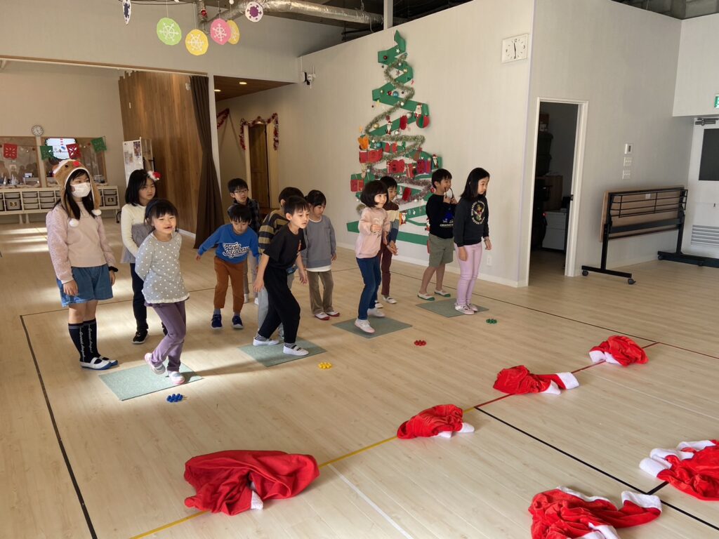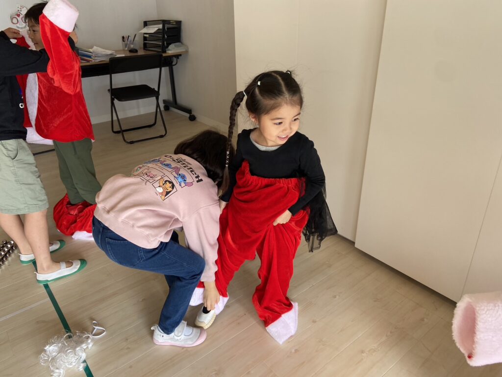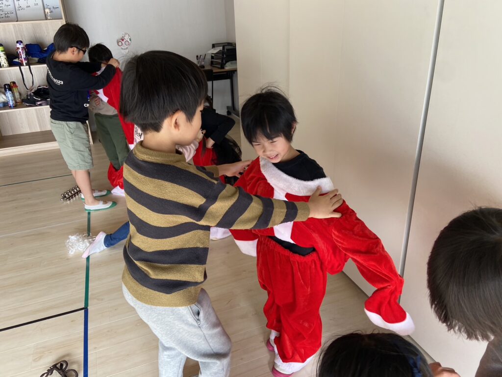 レースだから早くね!と伝えましたが、サンタの服が大きく時間がかかり、余計面白くなっていました(笑)