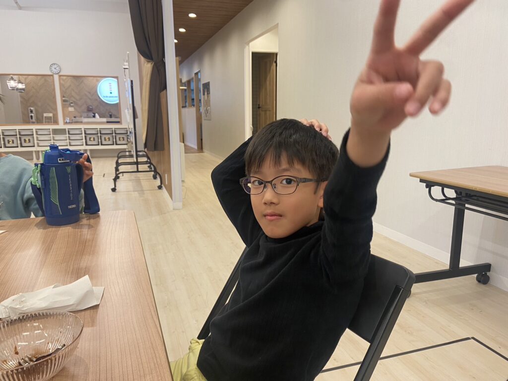 と麵をすするジェスチャーをしている子どもも。(笑)