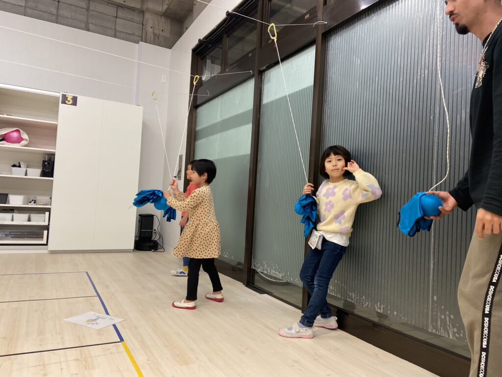 今日のゲームタイムはジップラインを使ったようなゲームでした!