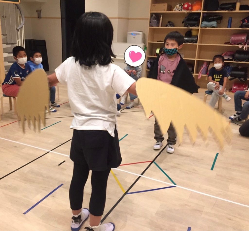 セリフだけでなく表情や声のトーン、ジェスチャーまでを意識して演じる練習です