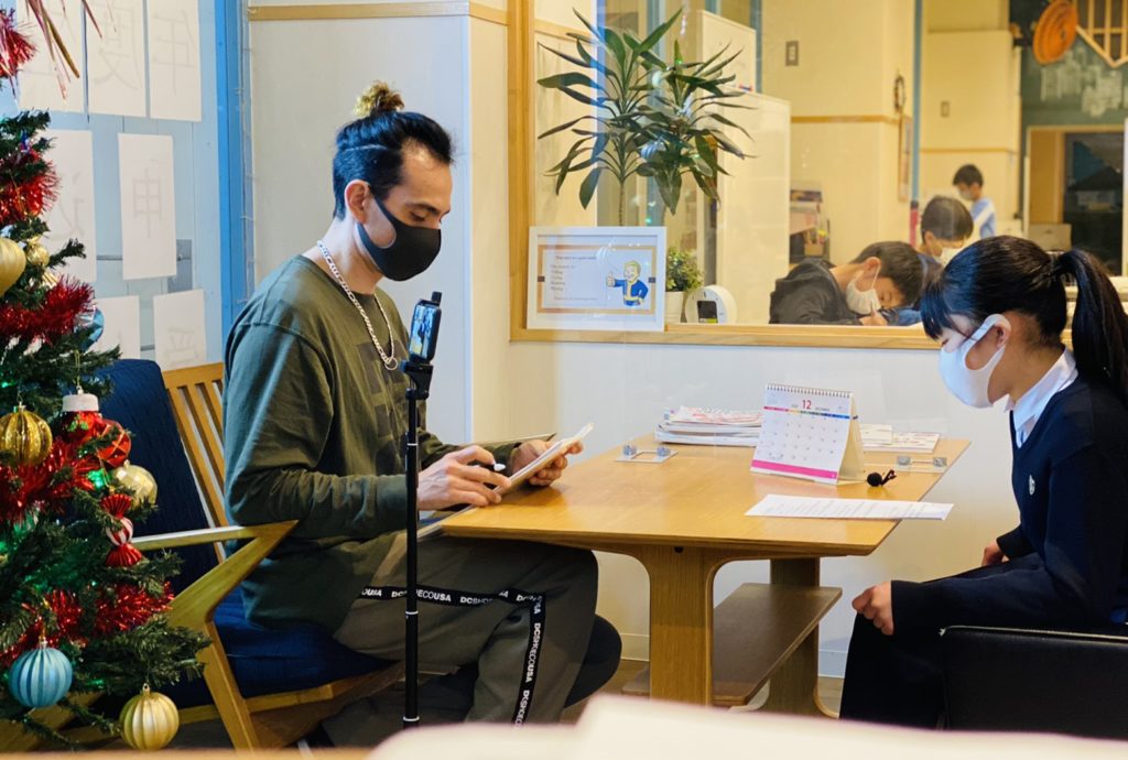 スピーキングのテストでは、先生からの質問に正しいセンテンスで答えます。