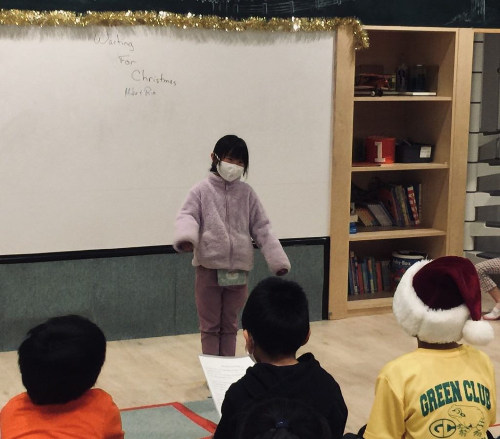 たくさん練習したMonthly Questions(今月の質問)のひとつWhat do you want for Christmas?(クリスマスにはなにが欲しいの?)をお互いに自然と聞きあっている姿も見られました。