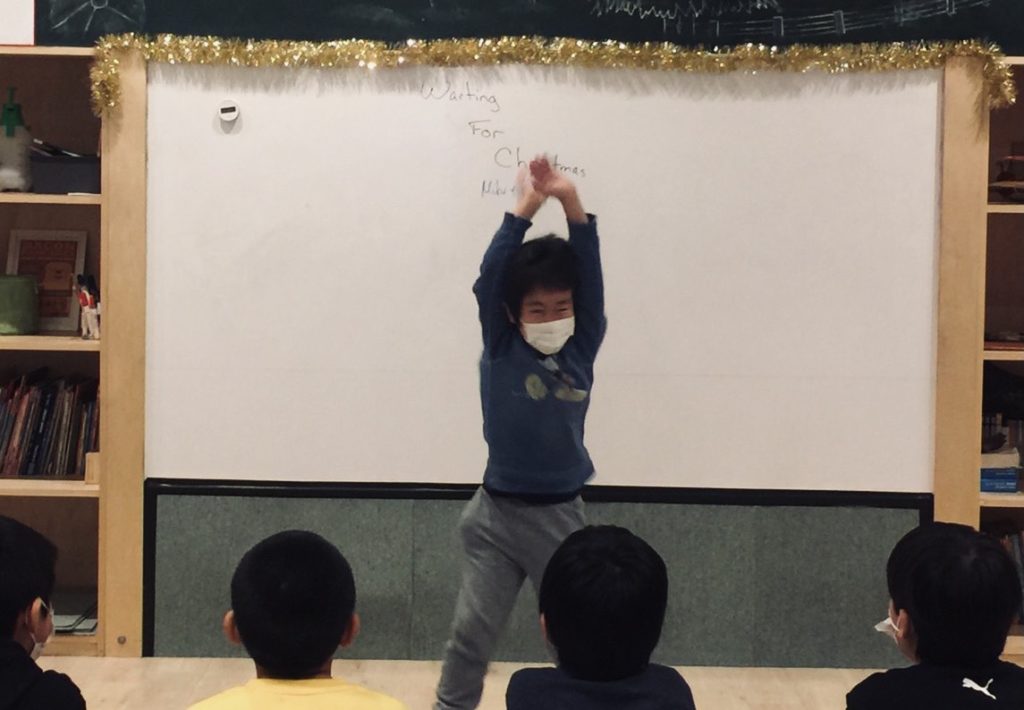 いつもはHello! How are you?(ハロー!調子はどう?)の挨拶が、今日はみんなウキウキした様子でMerry Christmas!!(メリークリスマス!!)でしたね。