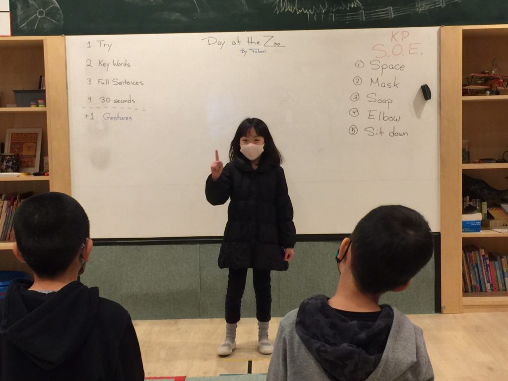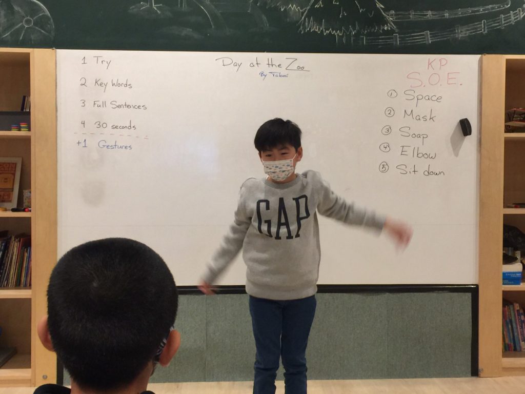 プレエリアはキーワードとジェスチャーを中心に発表、またメインクラスでは全部を覚えられた子がさらにステップアップするため 30 seconds challenge (30秒間でスムーズに発表する)にトライしました!今日難しかった子は、次回またチャレンジしてみよう!