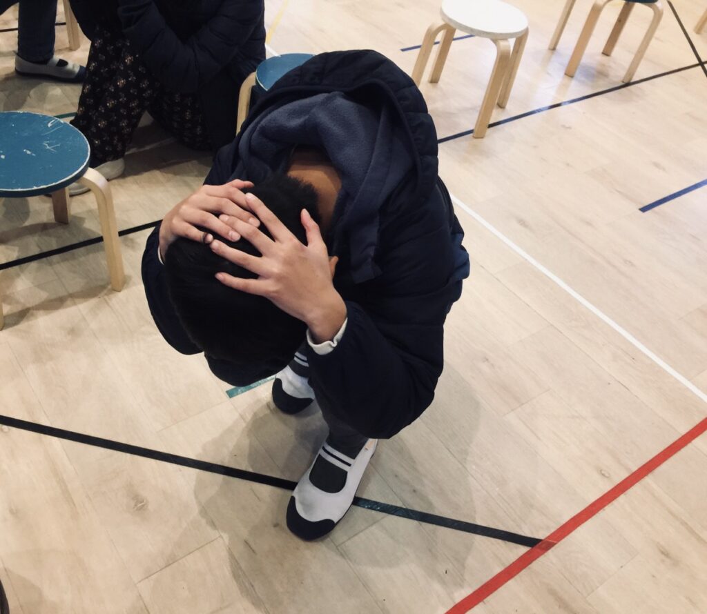 教室の中で一番安全な場所を確認して、どんな姿勢で先生からの指示を待つのかを実際にやってみて、避難場所の公園と近隣の中学校まで出かけて行きました。