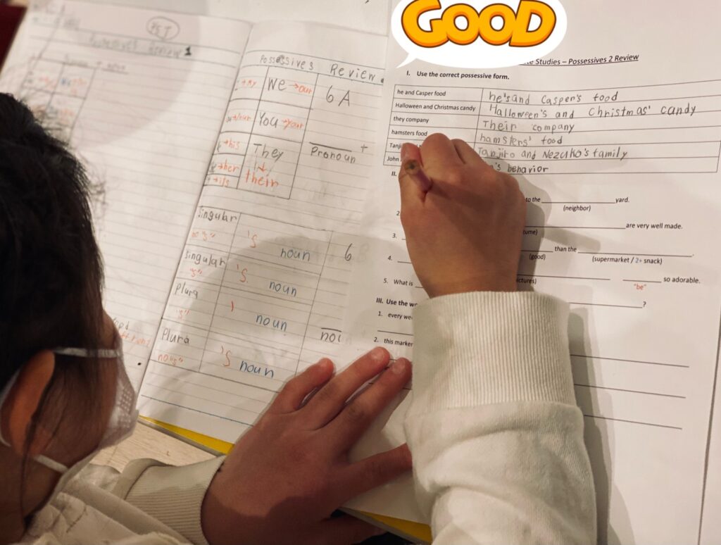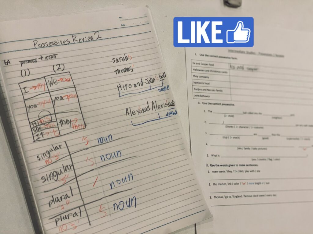 中級クラスは先週に引き続きPossessives(所有格)の文法をしっかりと復習しました。