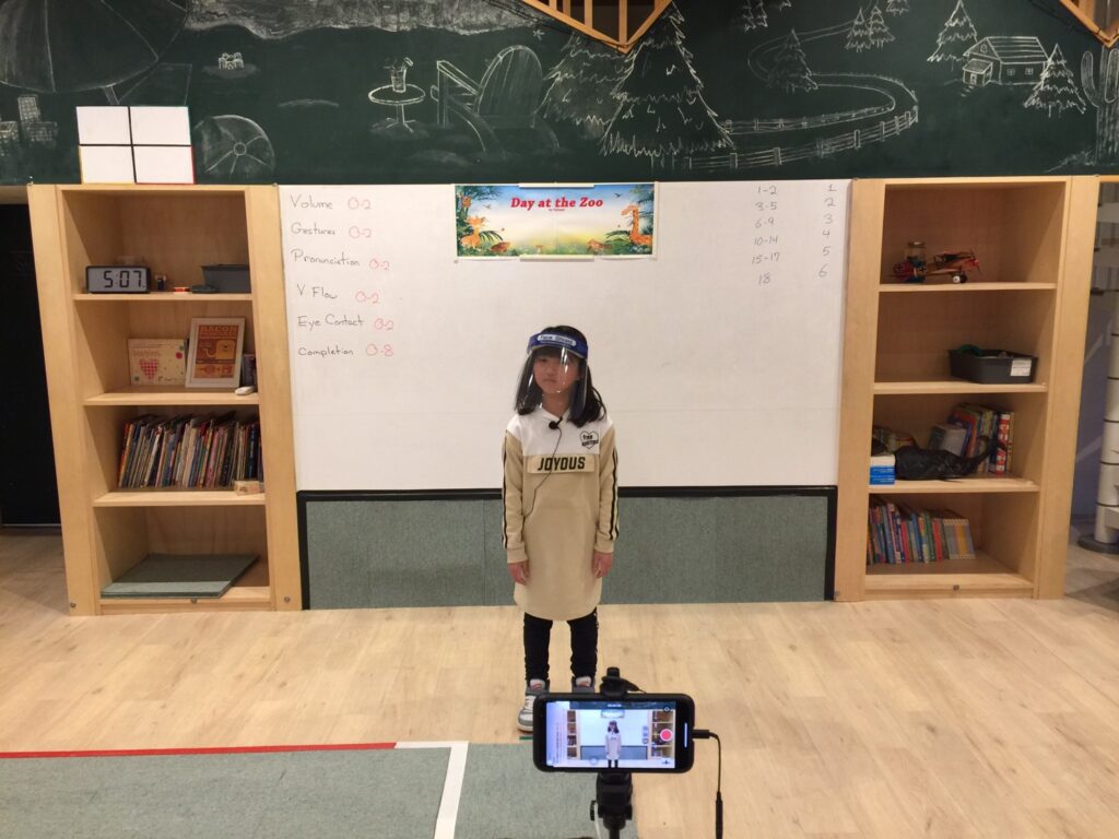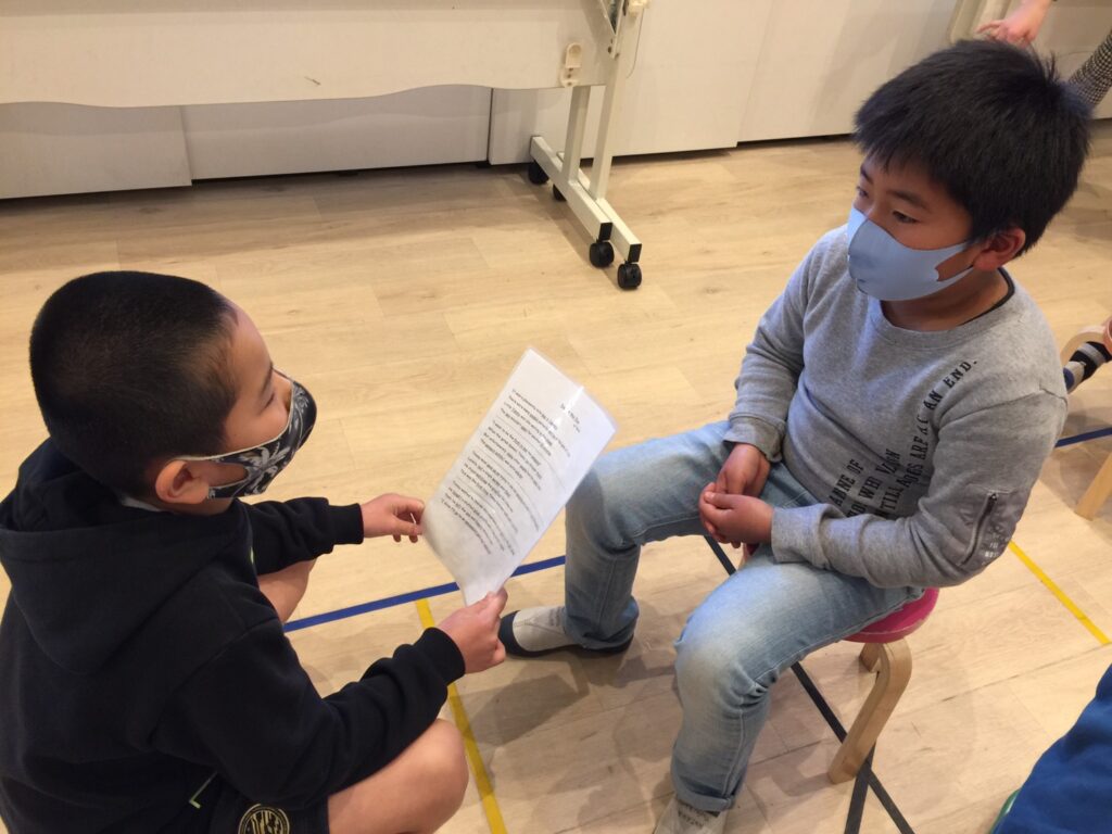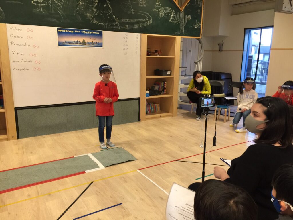 Waiting for Christmas(クリスマスを待ちわびて)か Day at the Zoo(動物園での一日)のどちらか1つのストーリーを選んで発表です。ストーリーを全部覚えてきた生徒もたくさんいましたが、単語を言い換えてオリジナルのストーリーを作り発表している生徒もいました!Amazing!(すごい!)