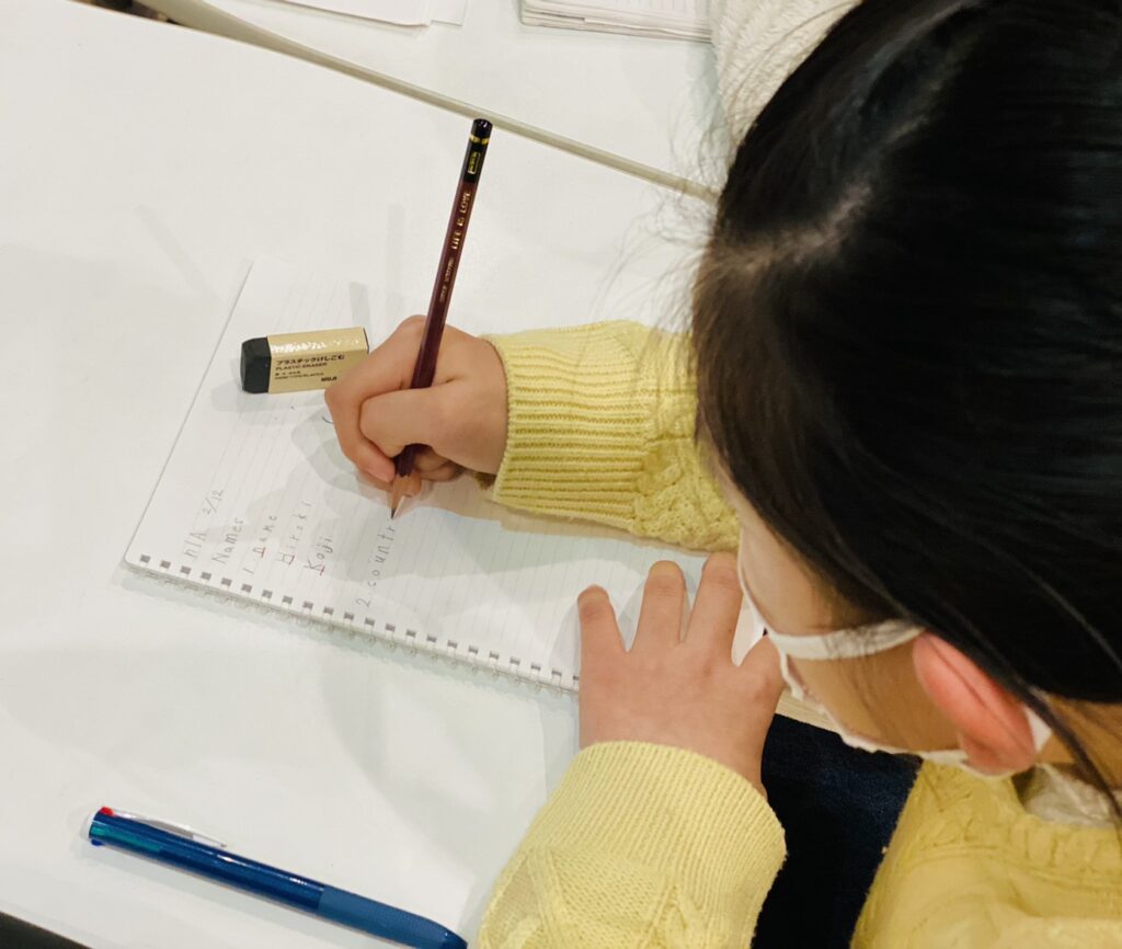 That’s so easy!!(そんなのすごい簡単だよ!!)という声が上がっていましたが、実際にSelf introduction(自己紹介)のお題にそってライティングをしてみると、みんなスペルがすごくニガテ・・・