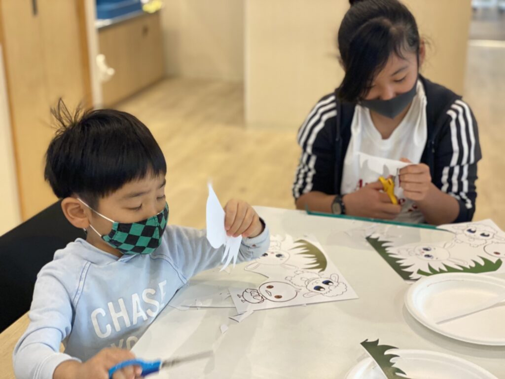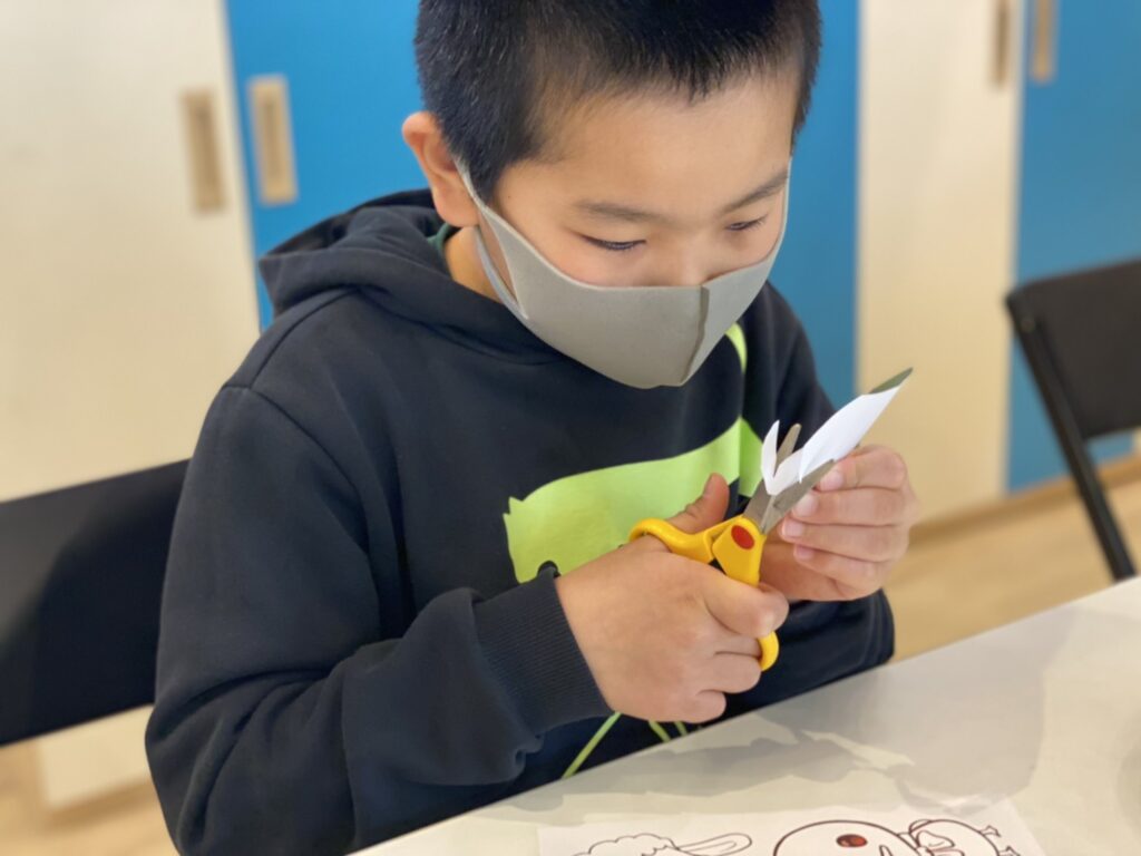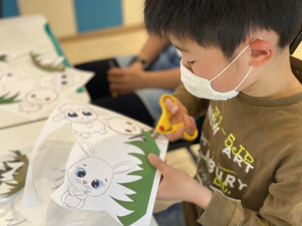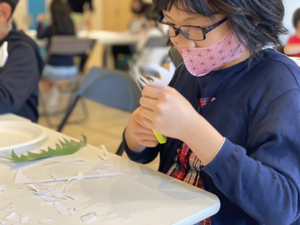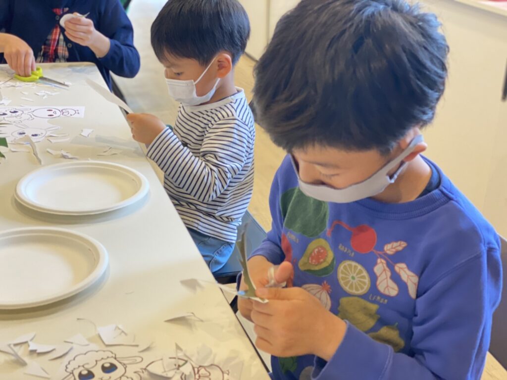今日の午前イベントは春をイメージした紙にんぎょう作りをしました