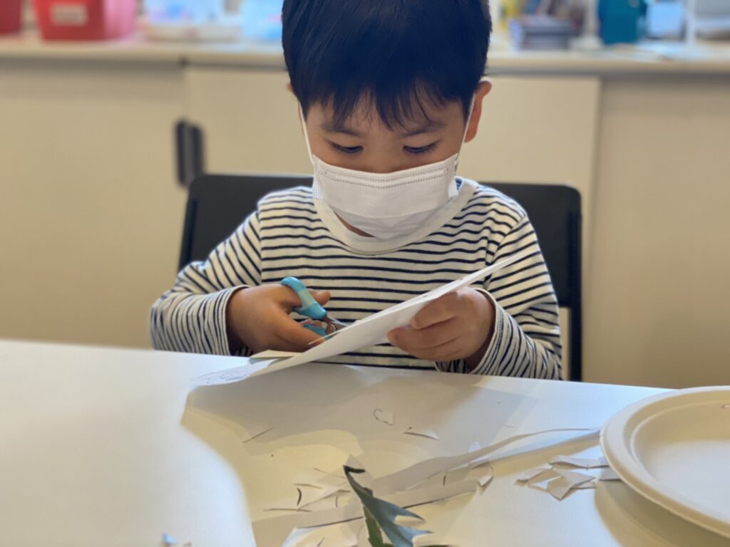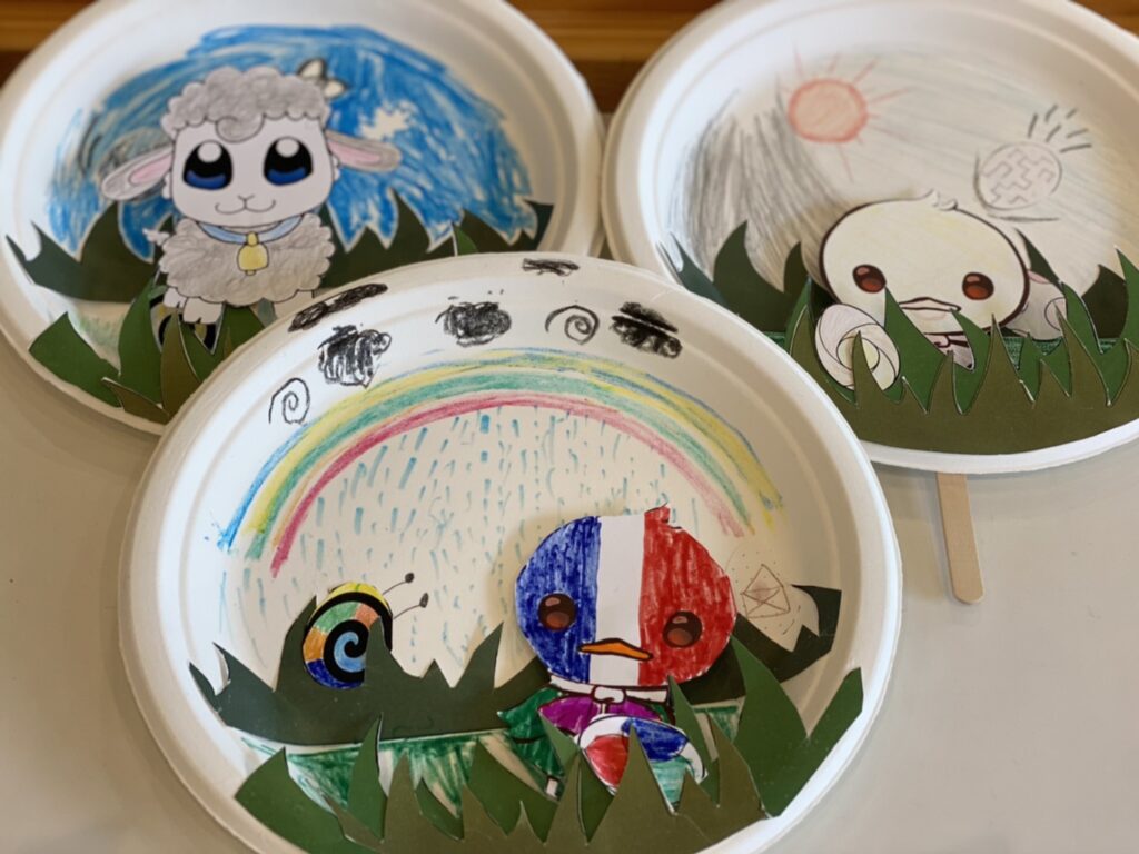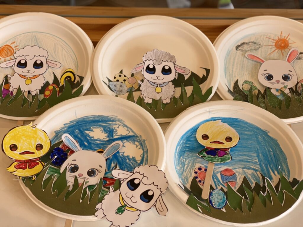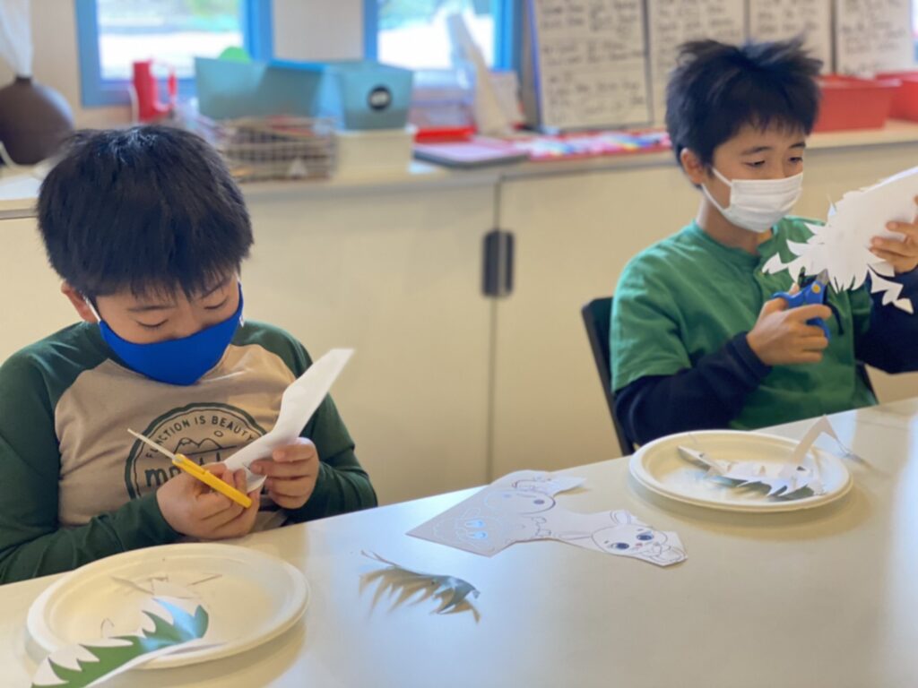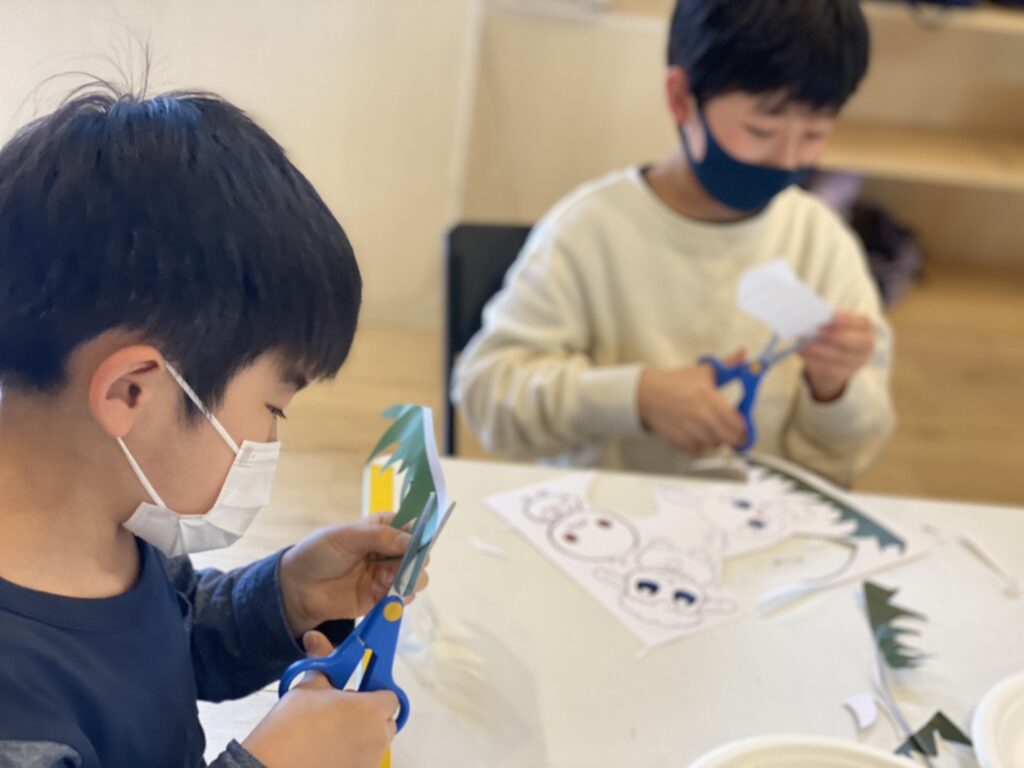 今日の午前イベントは春をイメージした紙にんぎょう作りをしました