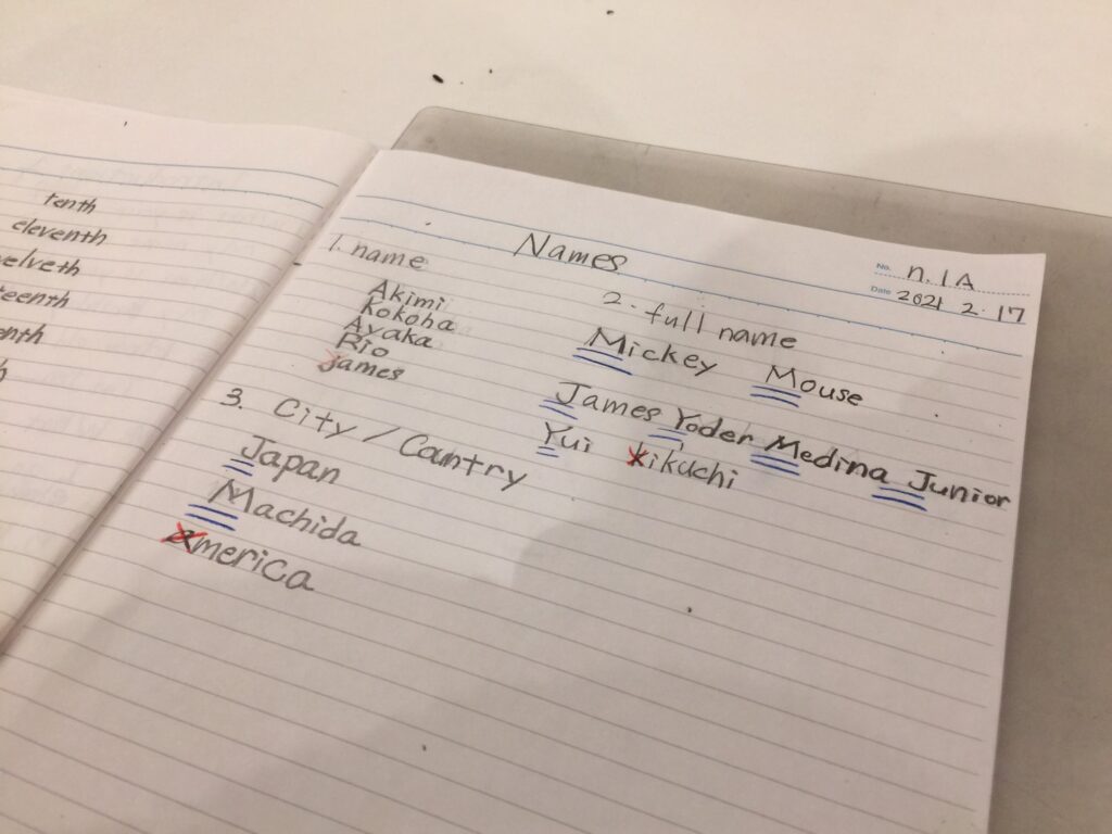 ライティングの時間では大文字と小文字などのルールを改めて確認し、最後には練習問題にチャレンジしました!