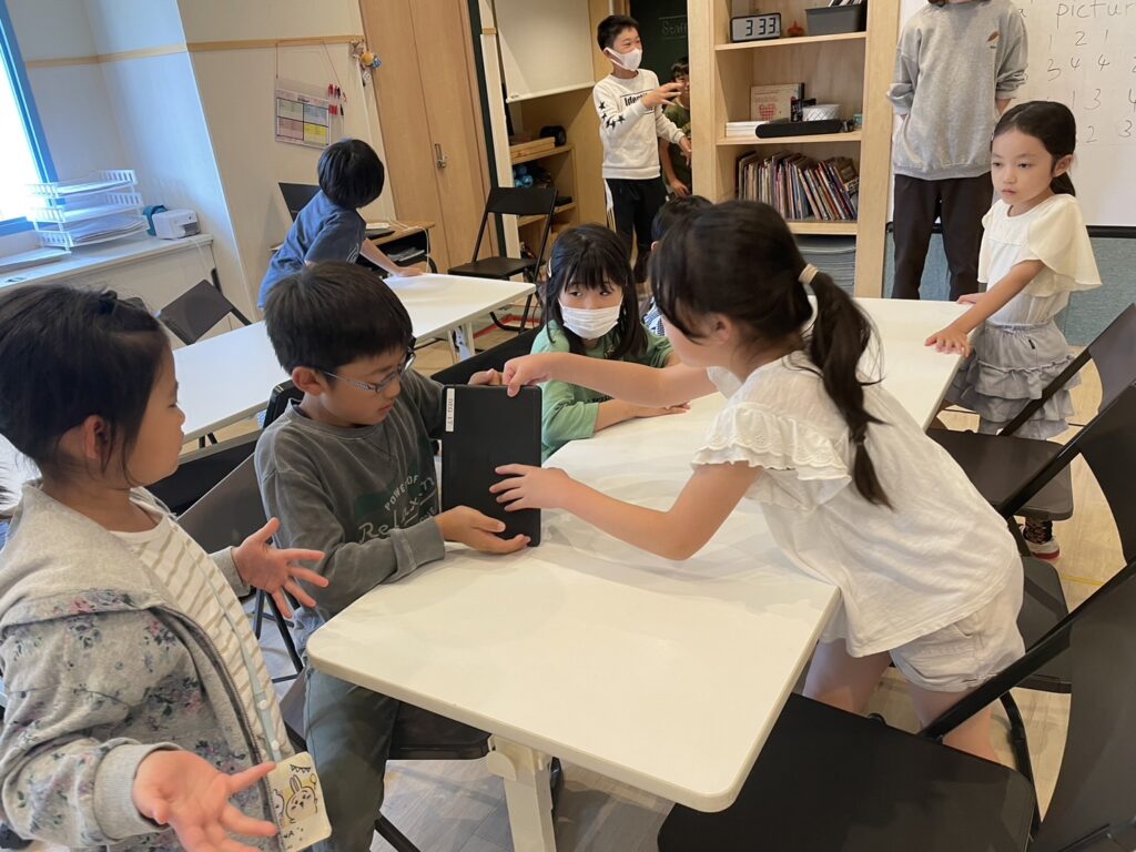 スピーカーから出る音を聞いて、その音を予測し、タブレット端末を使ってその音が出てるものを写真に撮ります!