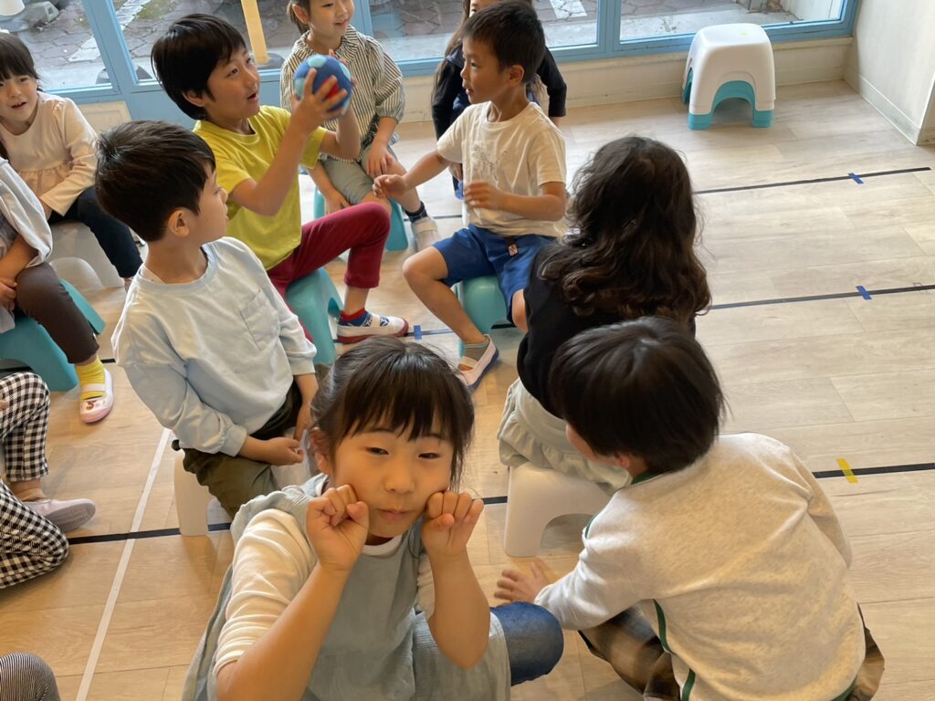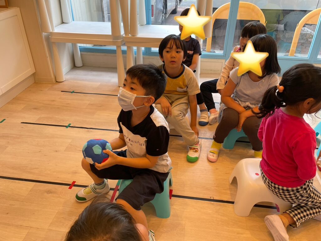 プレエリアでは、ボールパスをしながら単語の練習をしました!