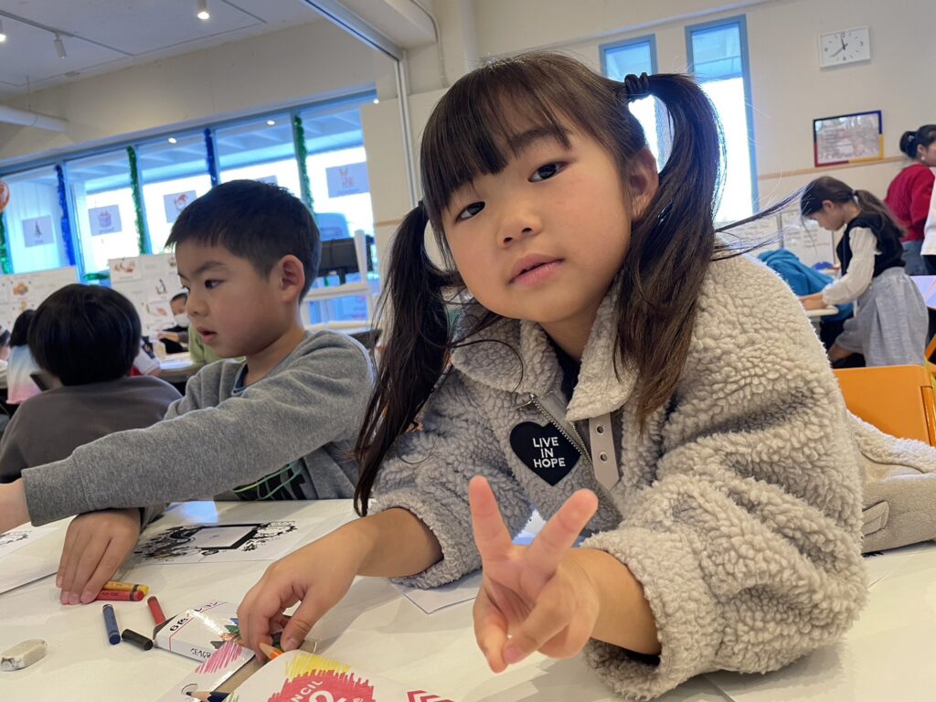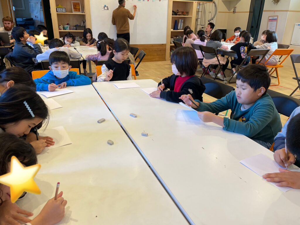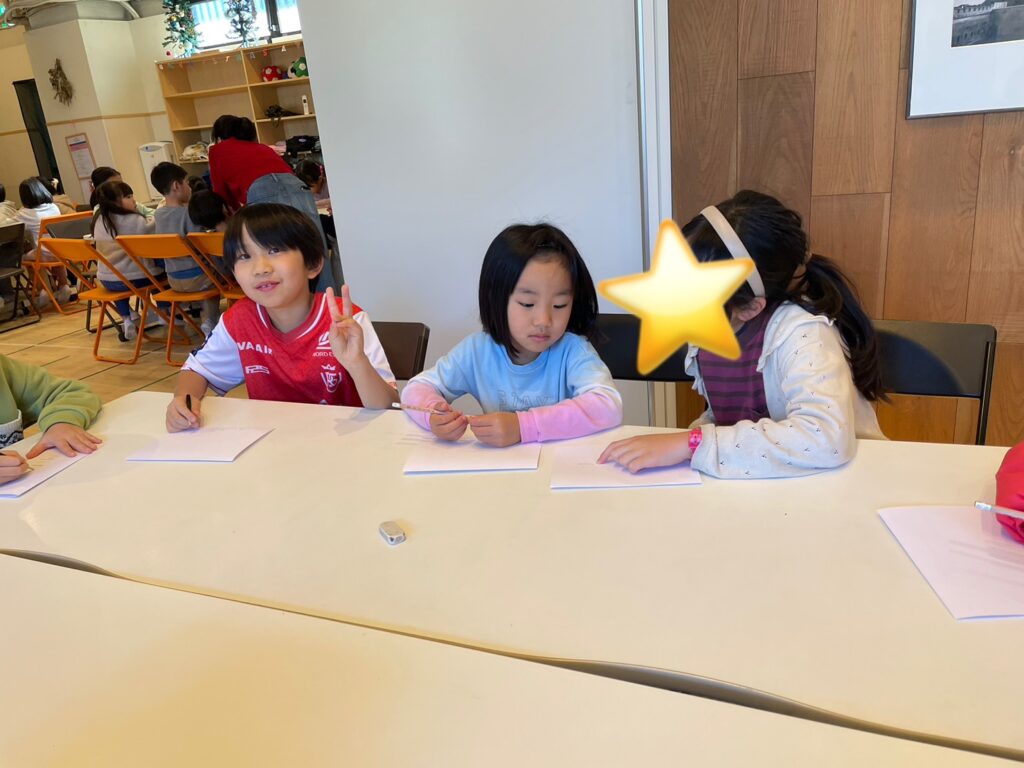 好きな言葉で書いておっけーでしたが、頑張って英語で書こうとする子も何人もいました!