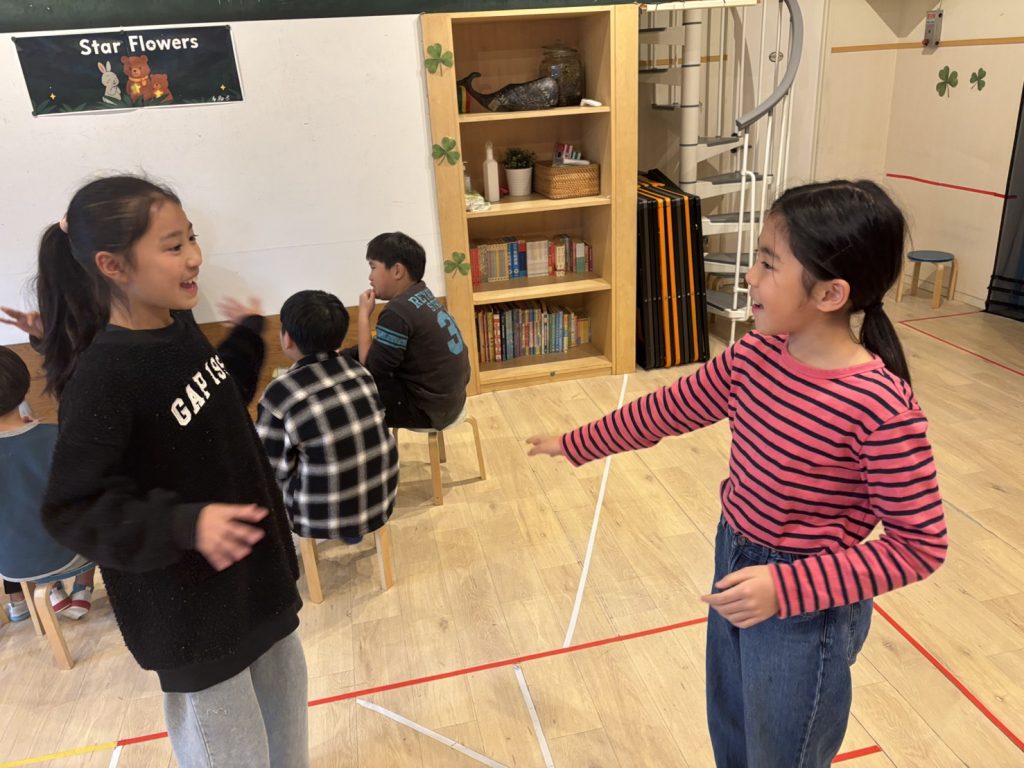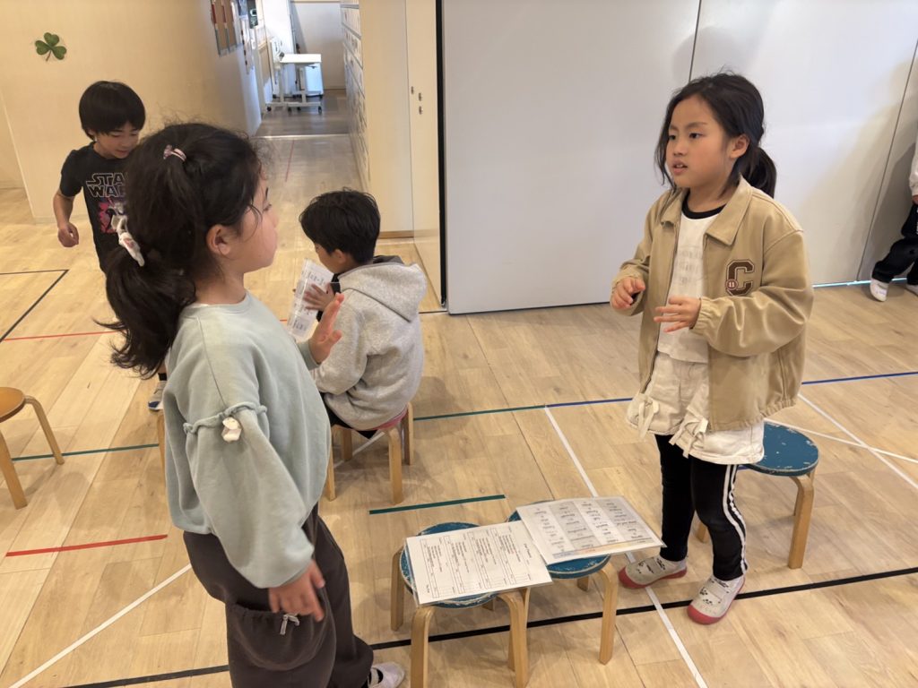 生徒たちは早速練習に取り掛かりました。これまで習ってきた単語の中から、いくつか覚えのあるジェスチャーがありました。