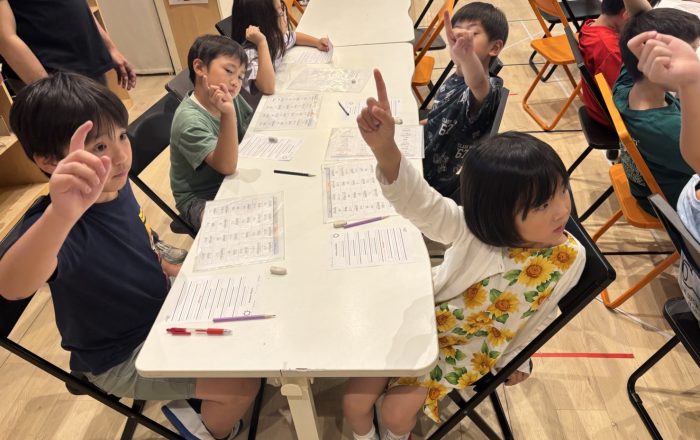 次に、縦と横の列から単語当てゲームを行いました。チーム対抗でどの単語が当たりかを予想しました。単語の練習以外にもレッスンの楽しみがここにあります。20個の単語から絞りに絞って正解を予想しました。