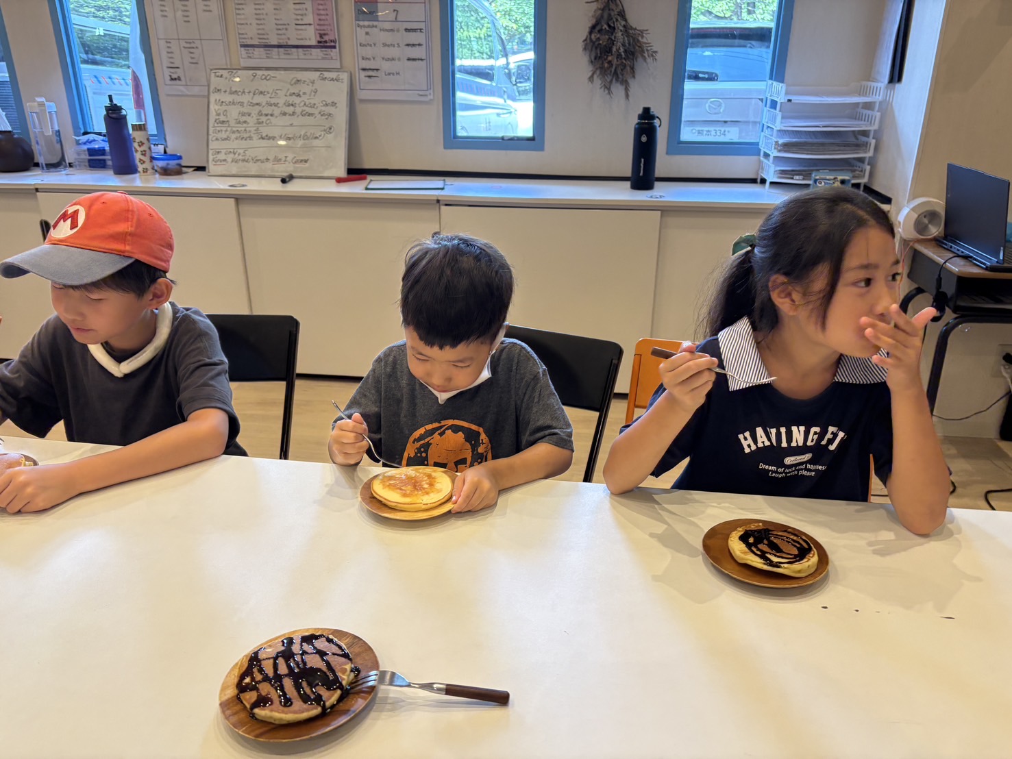 一日目の今日は、パンケーキ作り!みんなでおいしいパンケーキ作りをしました!