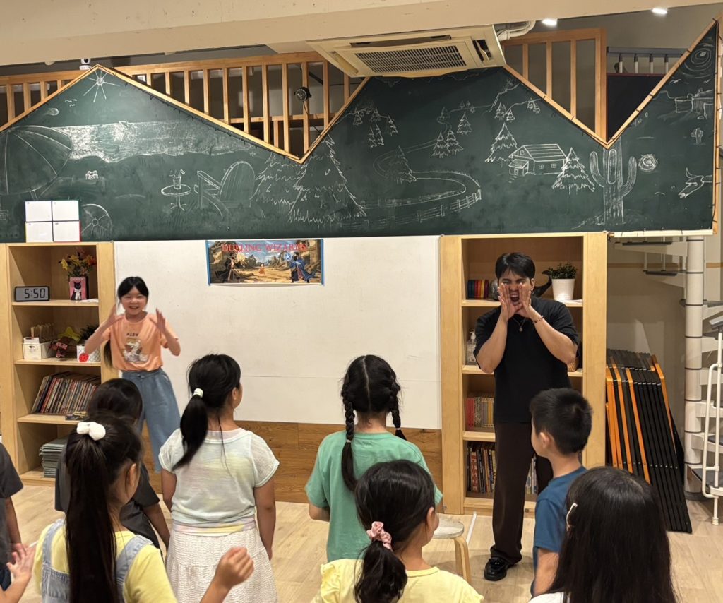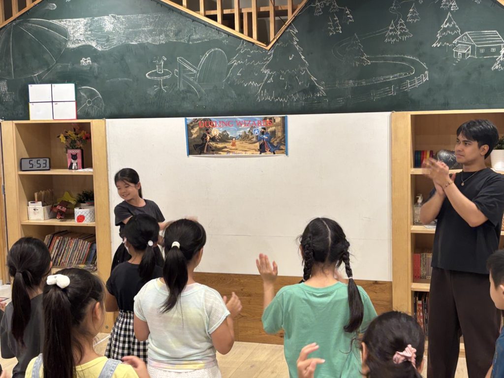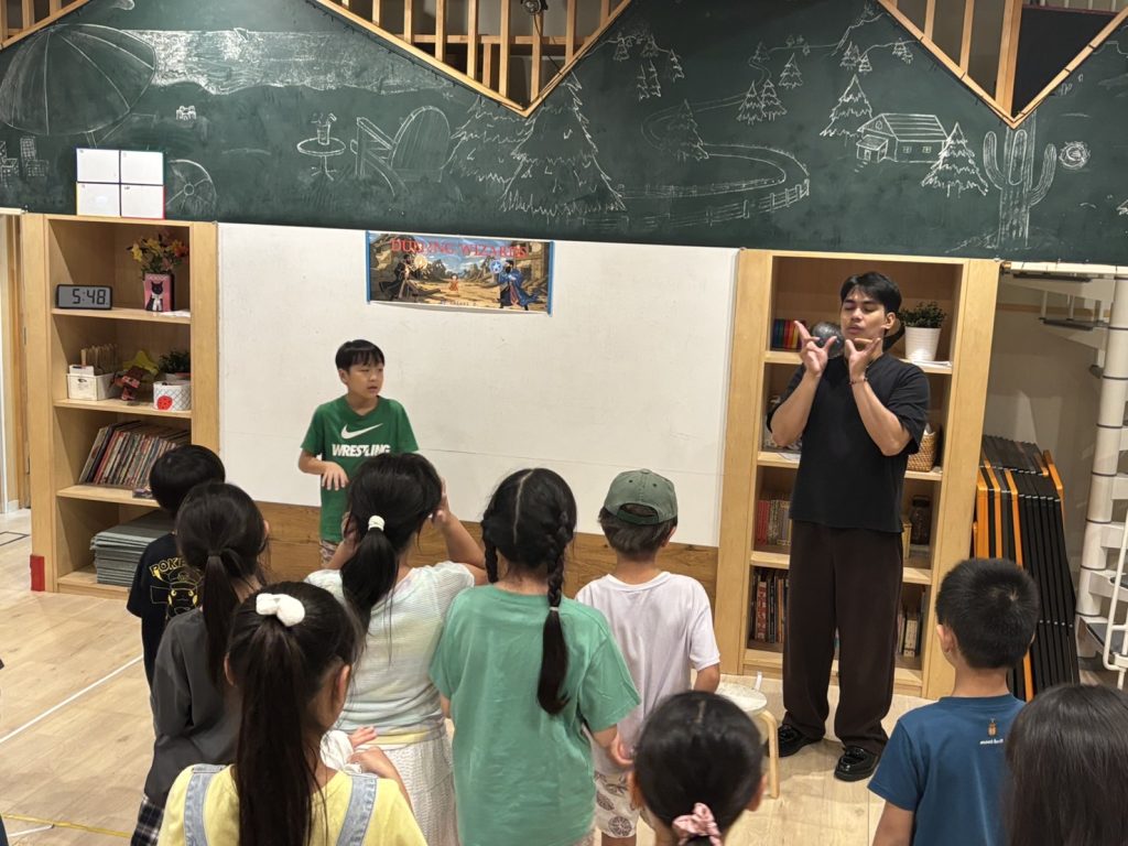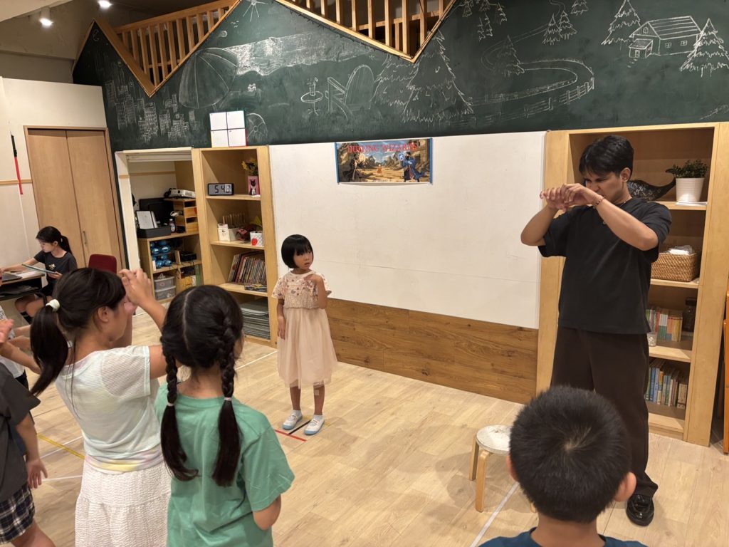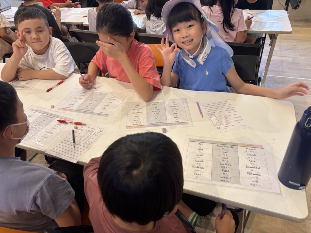昨日よりも生徒たちのグループ感と集中力が増してきたように思えました。”f-”で始まる単語foughtや“-ds”または“-des”で終わる単語wizardsやlandslidesに耳を傾けながら、発音の仕方を学習していきます。単語のジェスチャーと合わせる事で覚え易くなったのか、少しずつスラスラと言える様になってきました。