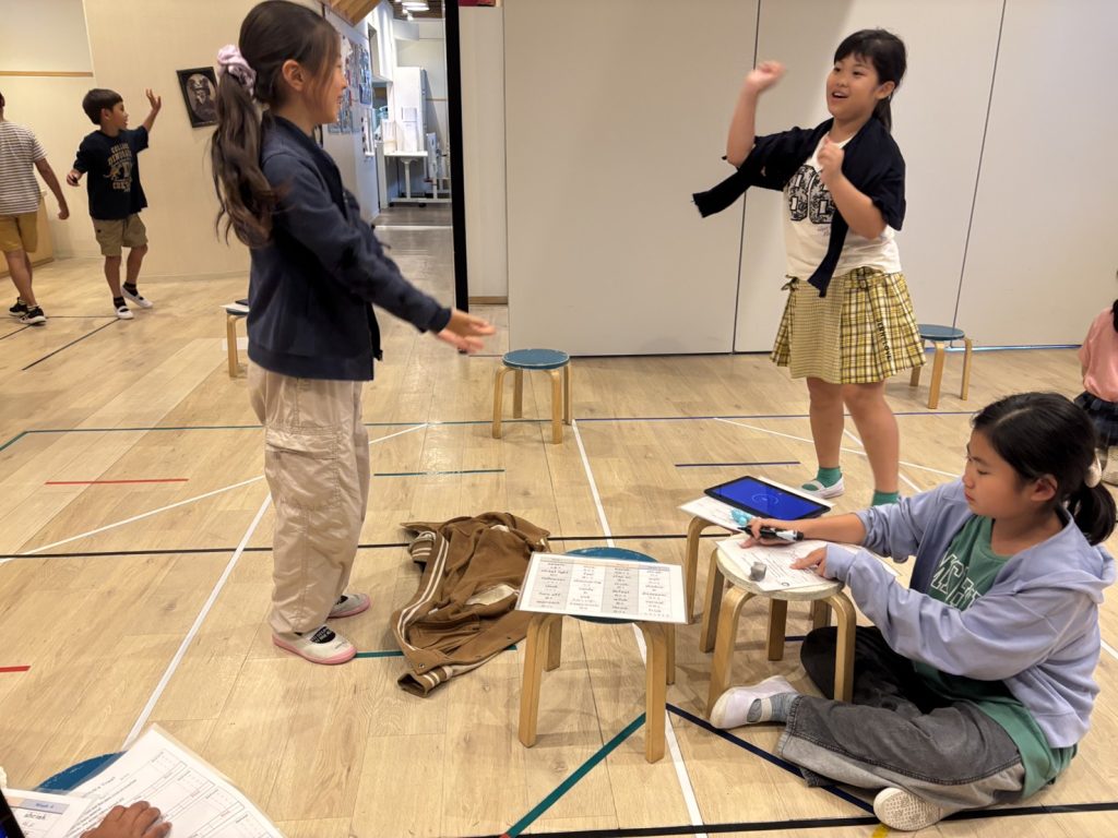 簡単そうですが実は難しく、それぞれのチームに一人先生がついてそれぞれランダムに単語を言います。どの単語がどのタイミングで来るのかわからなかったり、周りのチームに聞こえてしまう声の大きさだと失格になってしまうこと、なるべく小さい声で素早く行うことがカギとなります!