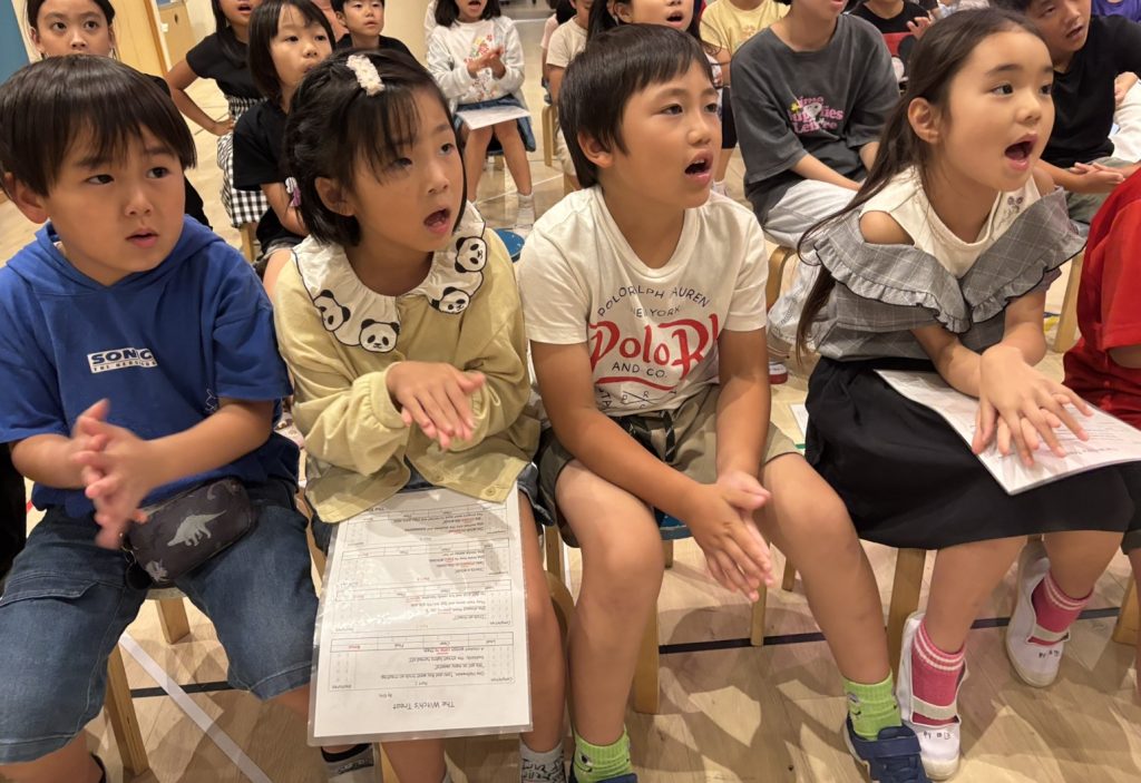 プリクラスでは毎回みんなで数回練習してから一人ずつ順番に発表していきます!