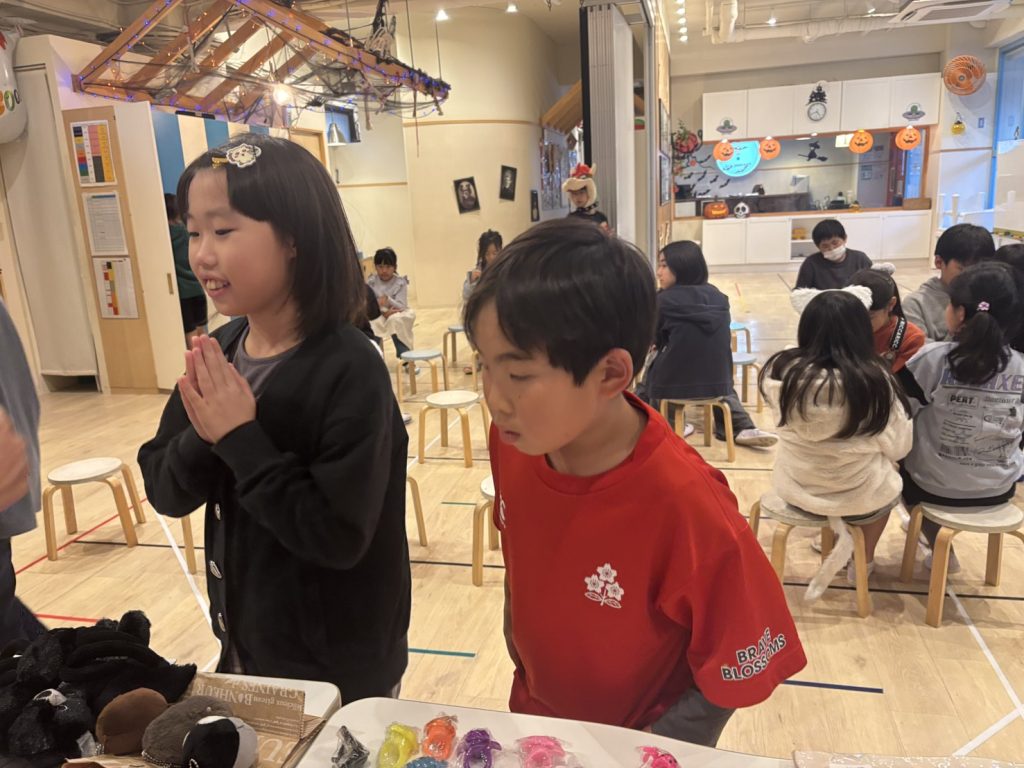 日頃、宿題やワークシートの提出などで溜めていたKPP=Kids Passport Pointsを使ってショッピングができるからです。今週は、ショップウィークで生徒たちの気持ちが高まっています!