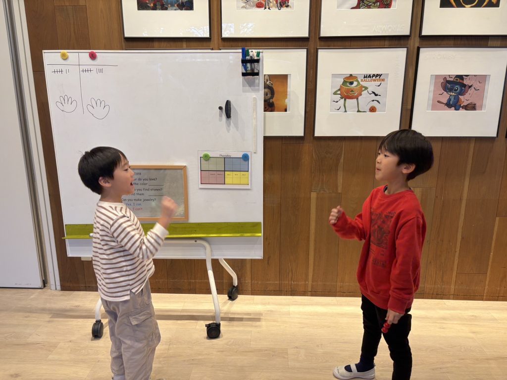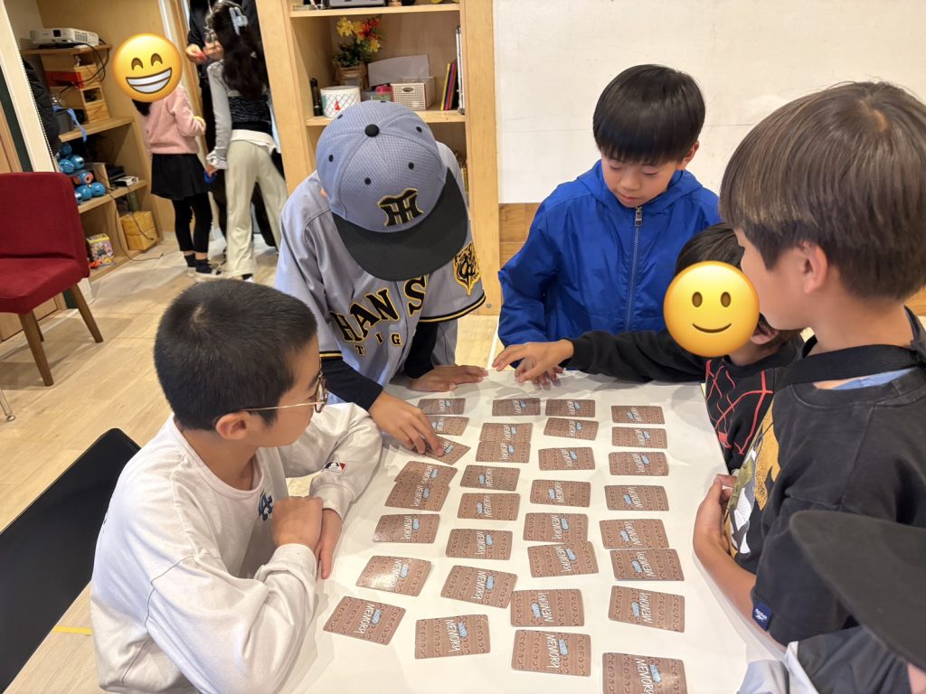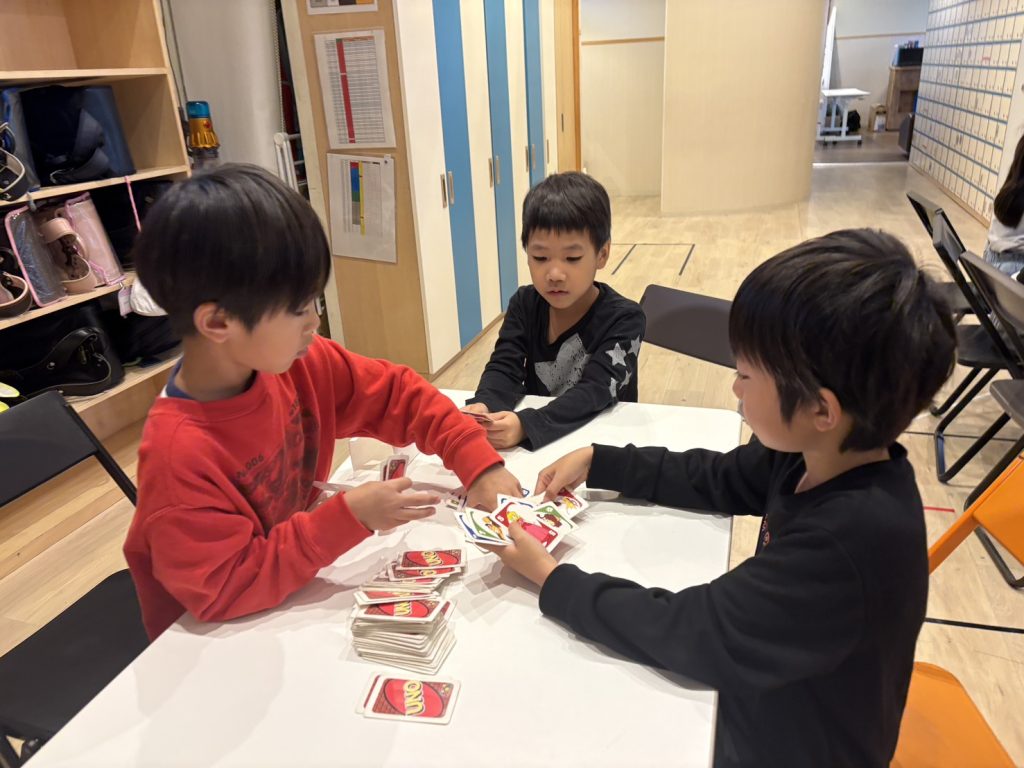 この時間は、好きなカードゲームを選んで、英語で会話をしながらいろいろなお友達と遊んだり先生と遊んだりします!なのでプリクラス、メインクラス混ざってたくさんのお友達を作るチャンスです!