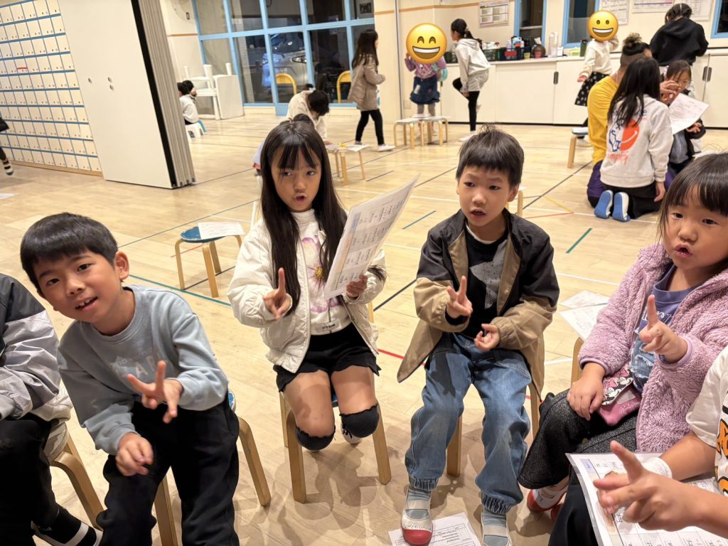今回のパートは前回のパートより少し難しいところもありますが、短い時間でもすごく集中して練習していたため、ほとんどの子が初めての練習だったにもかかわらずほとんど先生の手助け無しに発表できました!