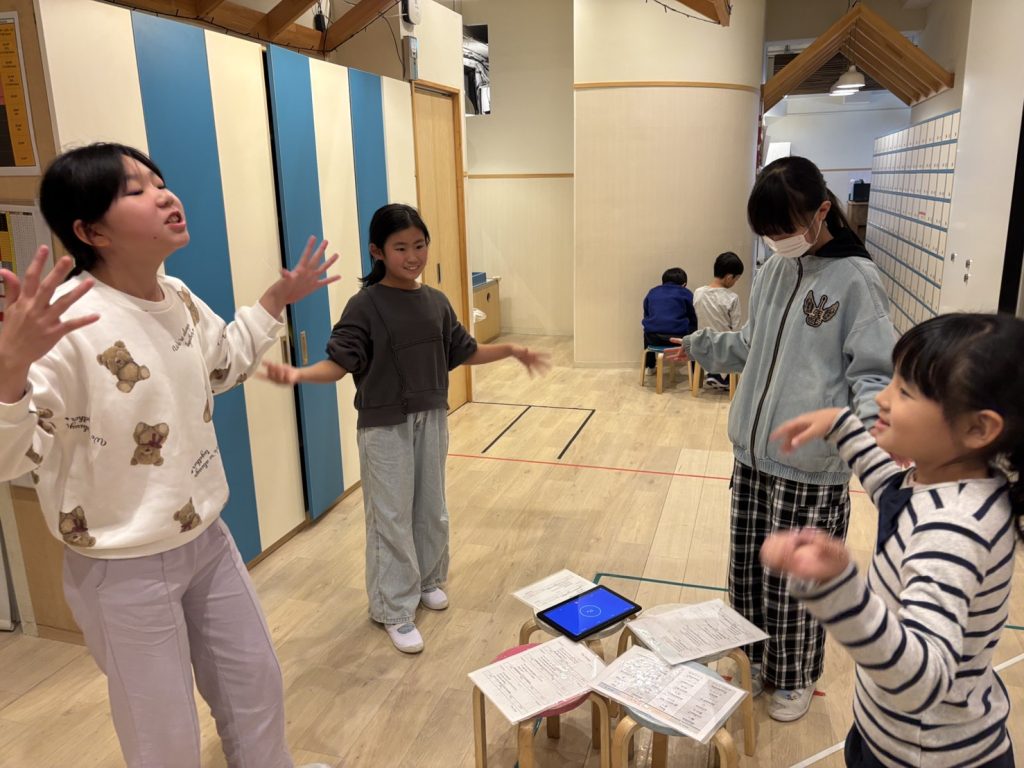 また、練習後のチームチャレンジでは、パート3までのまとめ劇を行いました。アドリブがあったり主人公のキャラクターにユニークな所があったりと、観客席からは笑いが起き楽しく表現力を見せてくれました!