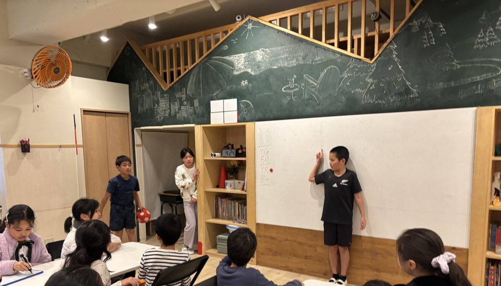 本日のメインクラスでは、今回のストーリー、パート3の練習がまとめ直前でした。今週は、主人公の女の子がとても鮮やかな何かを発見します。