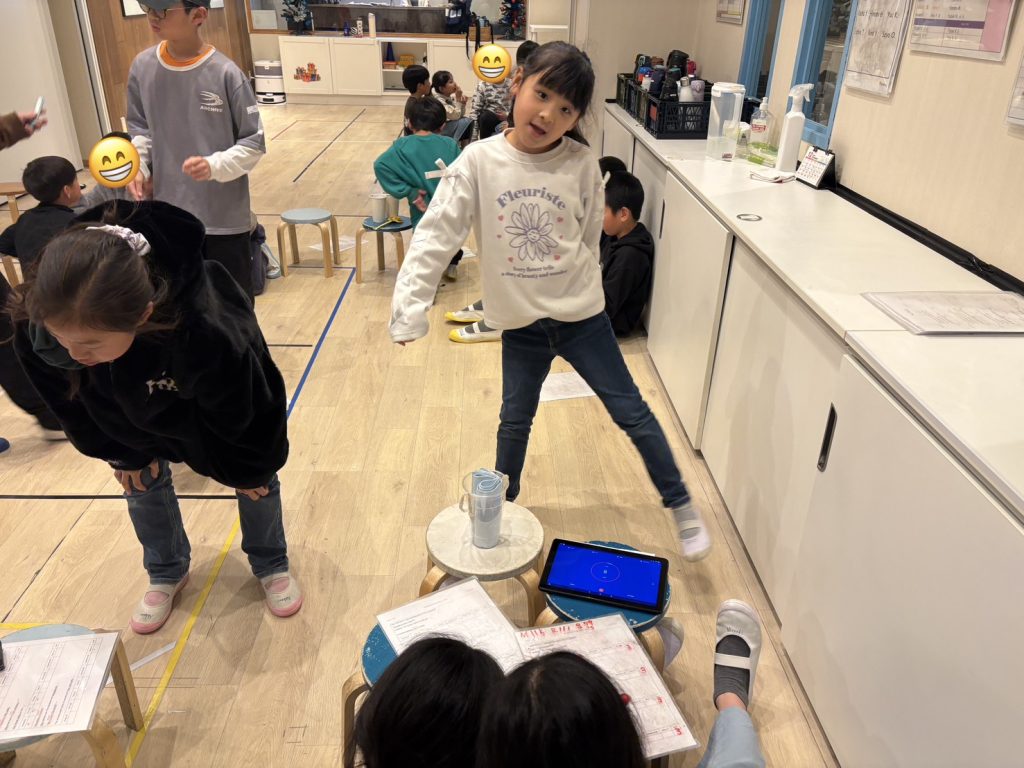 そしてそして子どもたちが今日一番盛り上がっていたのがTreasure box(宝箱)です。このカードをひくとポイントが二倍になるというラッキーカードです!今日はグリーンチームが引き当て、大喜びでした!!みんなチームと協力して、たくさんのポイントを集めるので必死であっという間に時間が経っていて終わる頃にはもっとやりたいという声がとても多くありました!