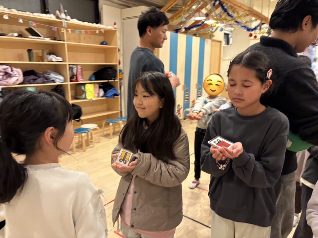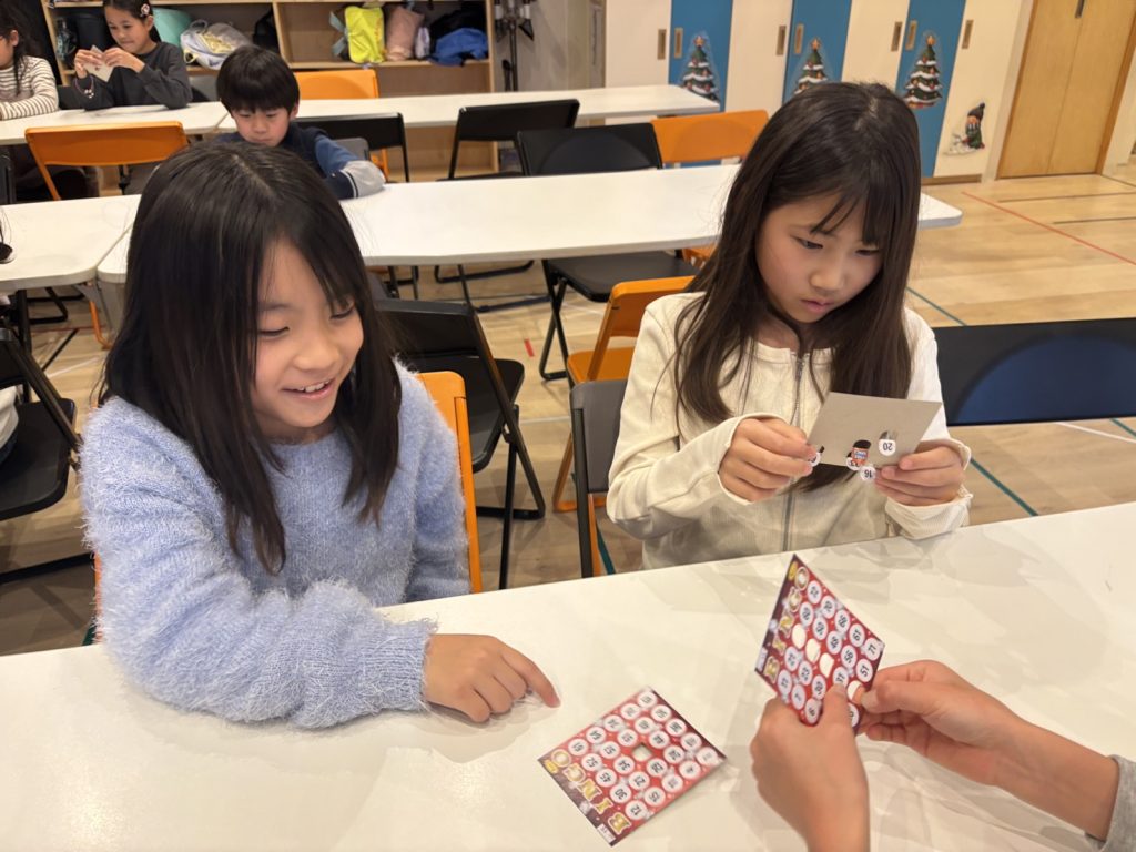 そしてクリスマス当日はまた違ったゲームやチャレンジを行いました!まずキッズパスポートに着いてからみんなでBINGOをしました!一列そろうと1KPPがもらえるということがあり子どもたちは大盛り上がり!!!