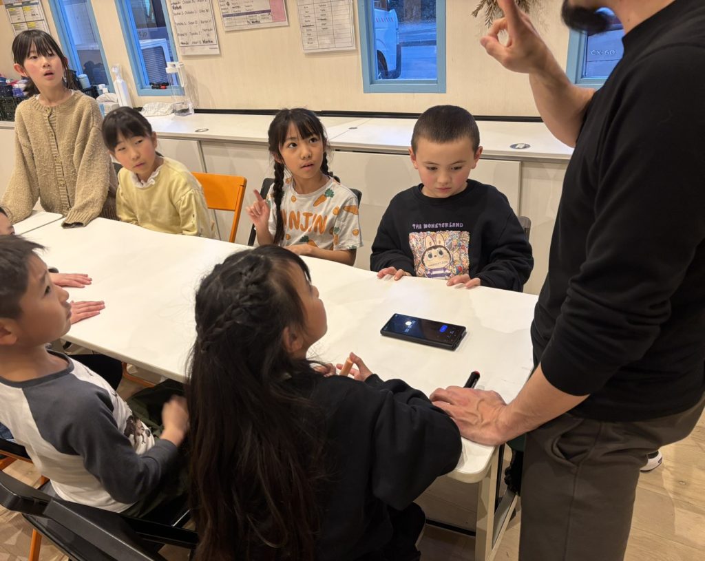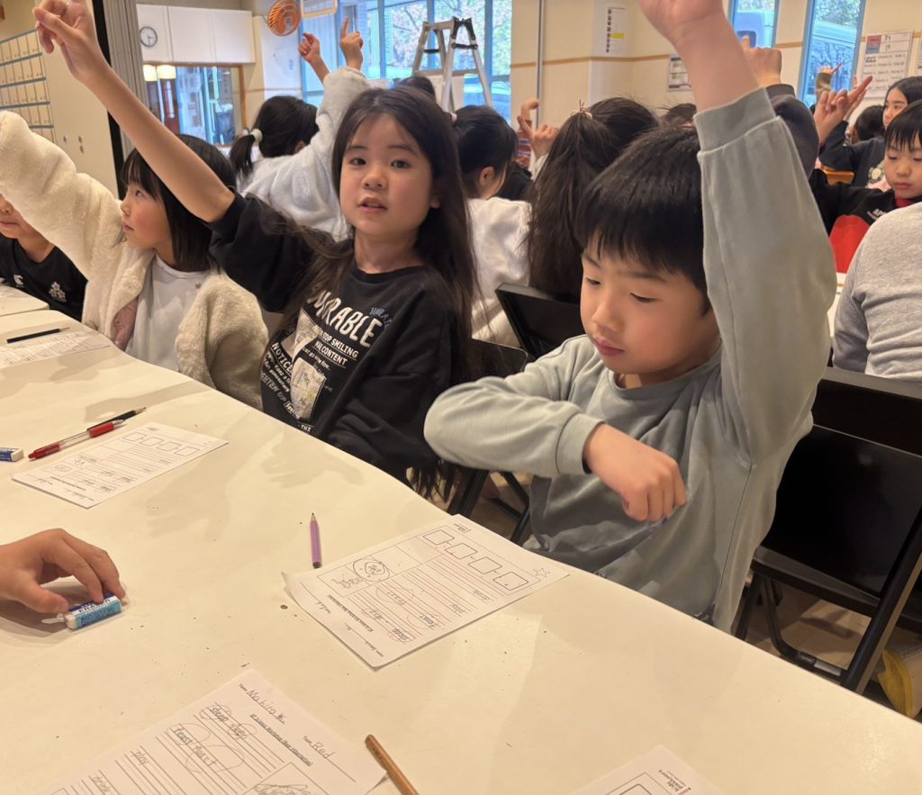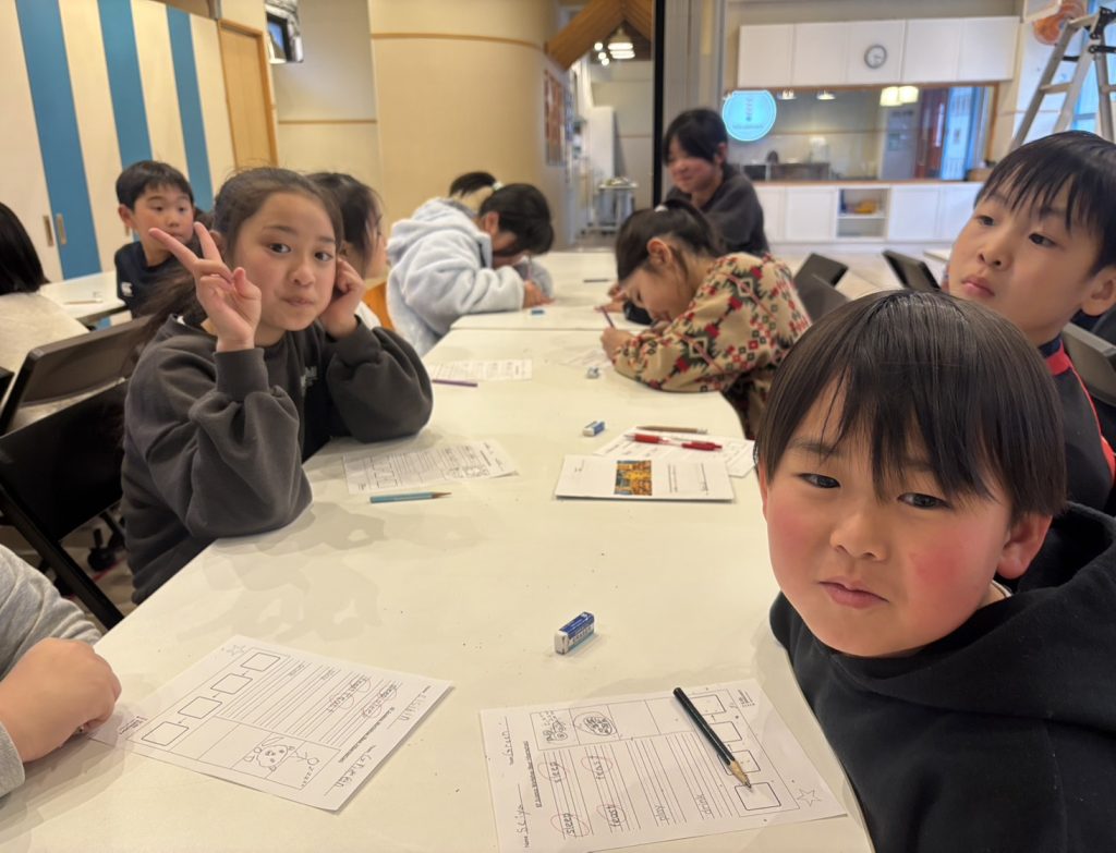 また、最後に宿題の発表!これは、宿題だけではなく提出でラッキーポイントがもらえます。そこで、絵描きクイズ方式で宿題が出ました。