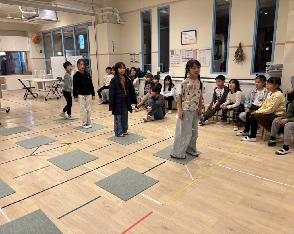 本日のメインクラスでは、ワークショップを行いました。冬にちなんだ単語を冬にイメージし易い動物とつなげて単語学習をしました。