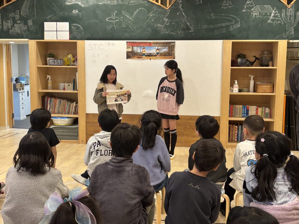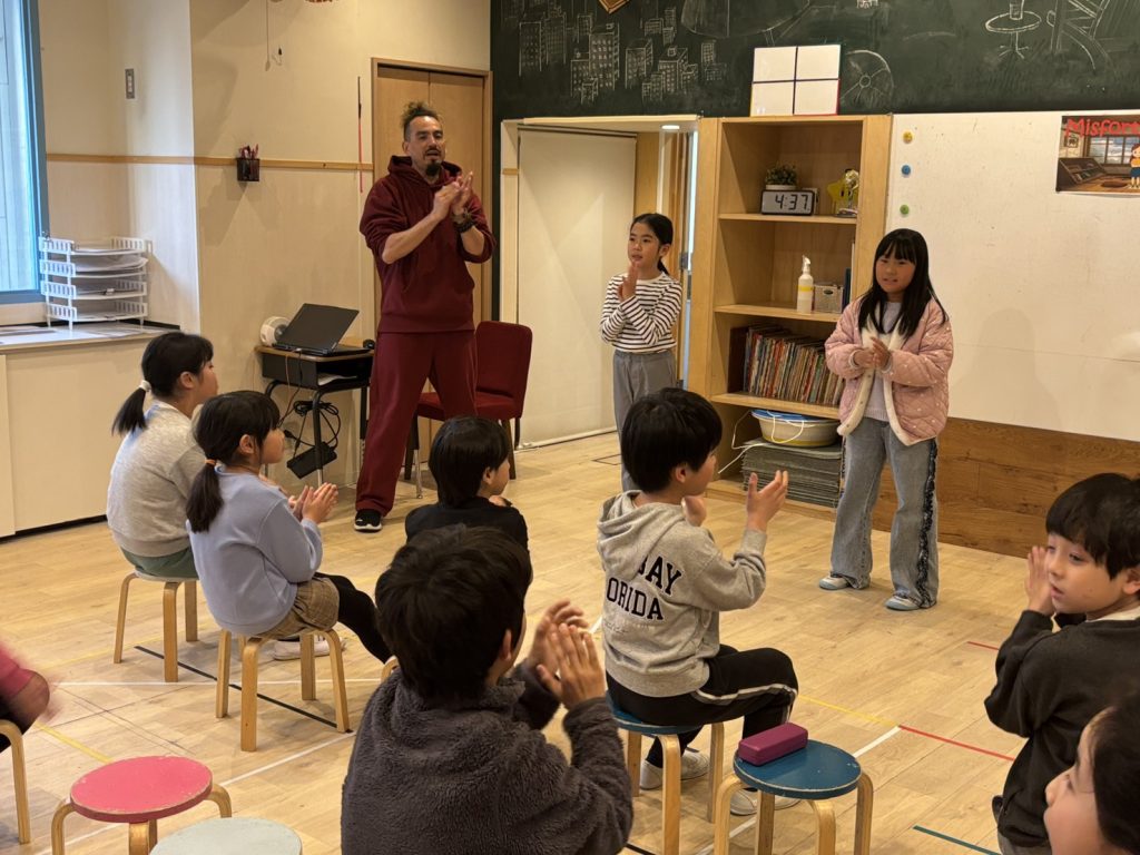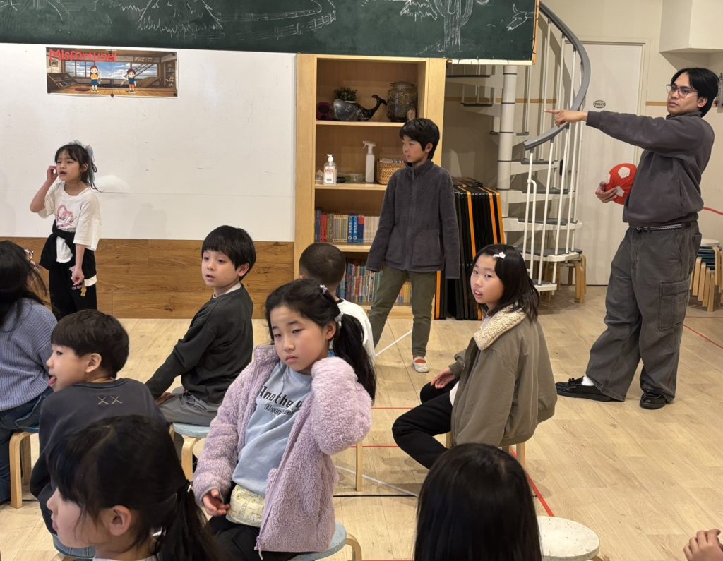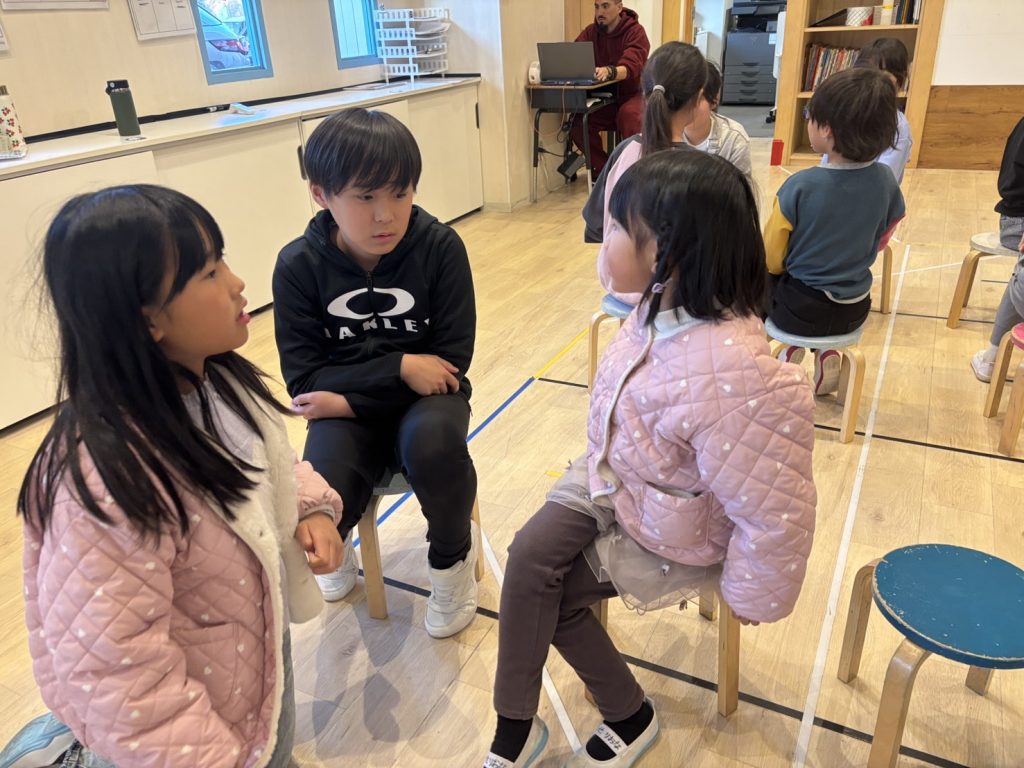 本日のメインクラスは、プリクラスと合同で避難訓練を行いました。今週は、先生たちの指示に素早く行動したり近くのに避難場所まで実際に行ってみたりと、避難の流れに慣れ始めていた中で、今回のレッスンは予告無しに警報を鳴らしてから訓練が始まりました。