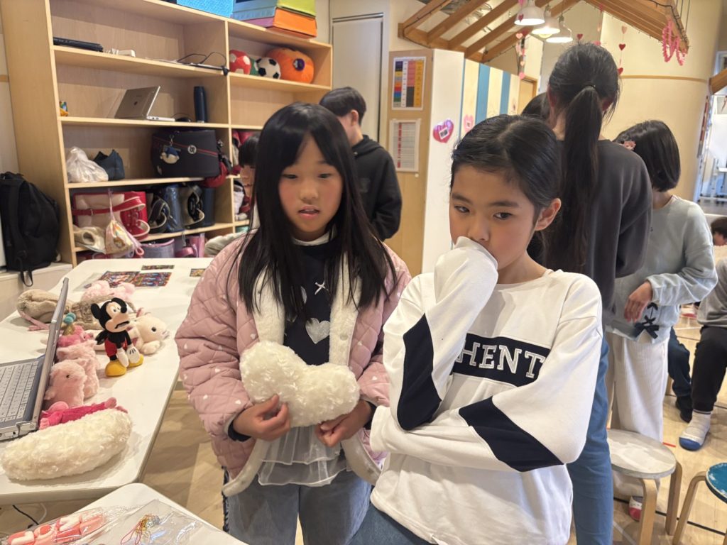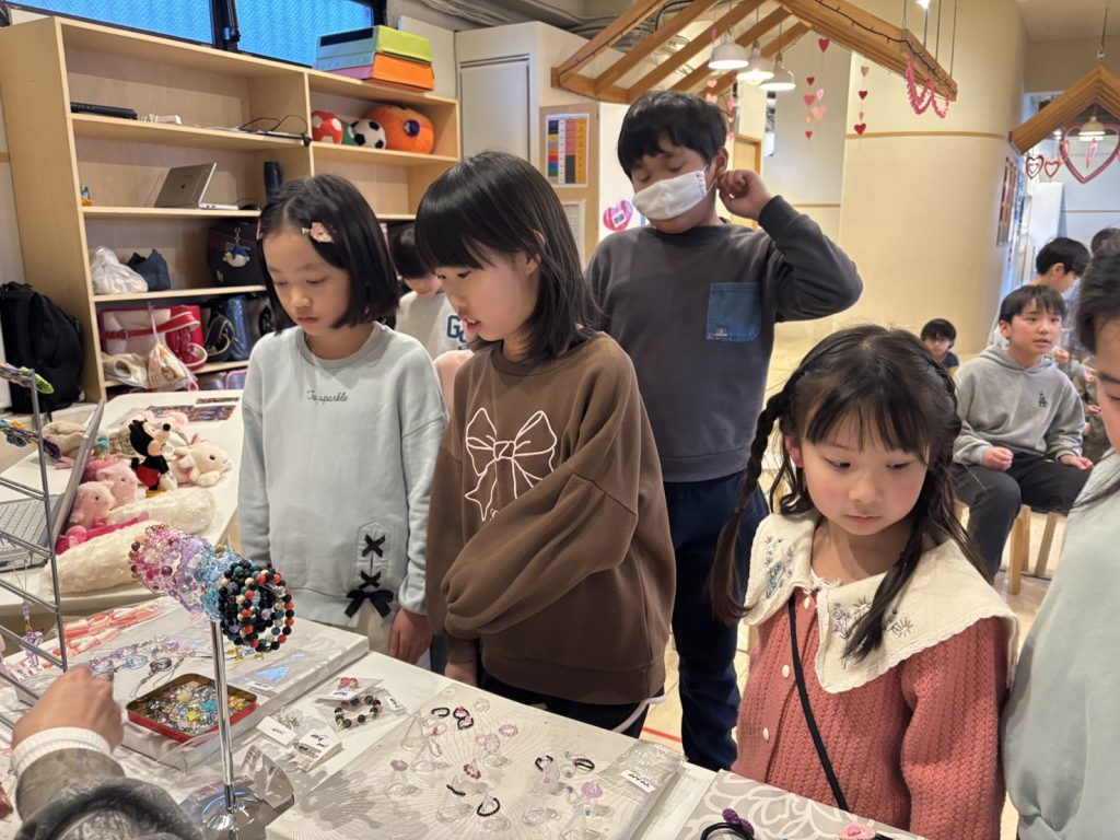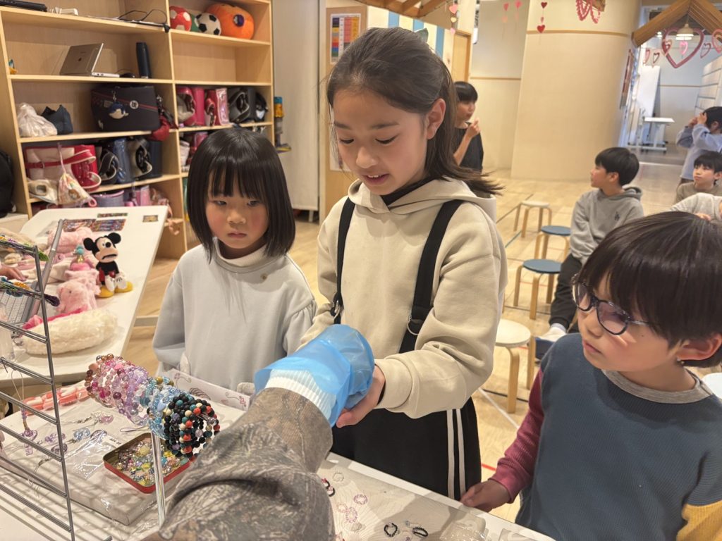 Wow! It snowed quite a lot! Did you do anything fun for that? 数か月毎に開催のショップ。今回のテーマ、”Valentine’s Day”にちなんで、本日バレンタインショップがオープンしました。生徒たちは手持ちのKPP(ポイント)で、買い物ができます。自分が好きなアイテムを探して、チーム別にショッピングが始まりました。
