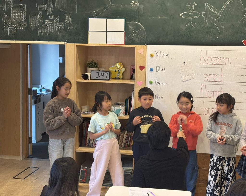 今週のワークショップは、サイエンスをテーマに、草木の成長過程を学習しています。花の種類や草木の部分など。公園や道端などで見かけるものなどを学習しています。