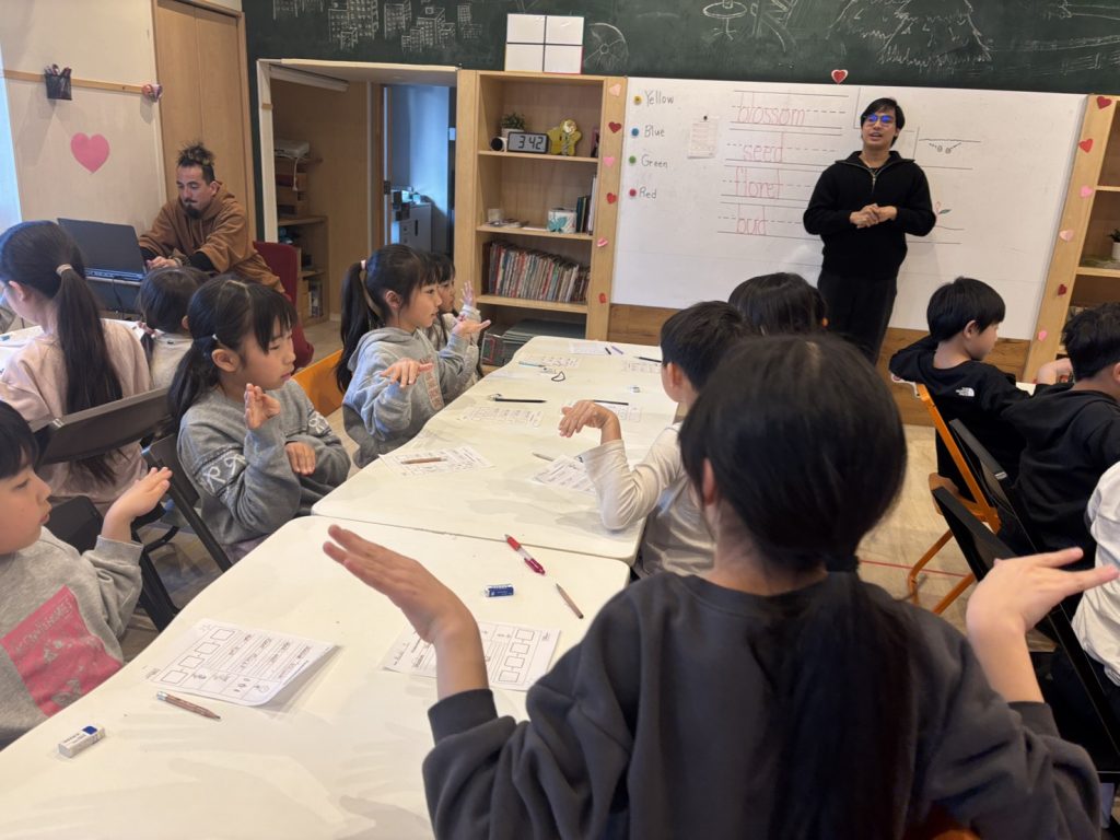 ジェスチャーを間違えたり動きが少しでも遅いとゲームから外れます。1人1人と抜けていき、最後の生徒の勝ちです。それぞれのスピードや表情などがあり、ゲームがさらに楽しくなりました!