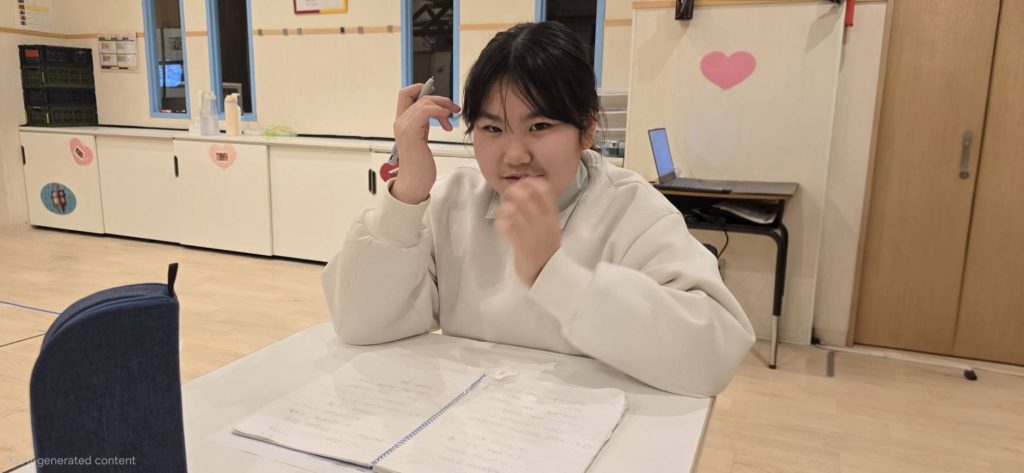 筆記テストの時間はあっという間に過ぎて、ここからが本番の様な自分の実力や学習内容を問われるスピーキングテストです。先生からの質問に、スムーズにそして自分の答えを言える様に準備しました。そして、生徒たちの表情がガラッと変わりました。緊張しながらも、下記などの質問に答えていきました。