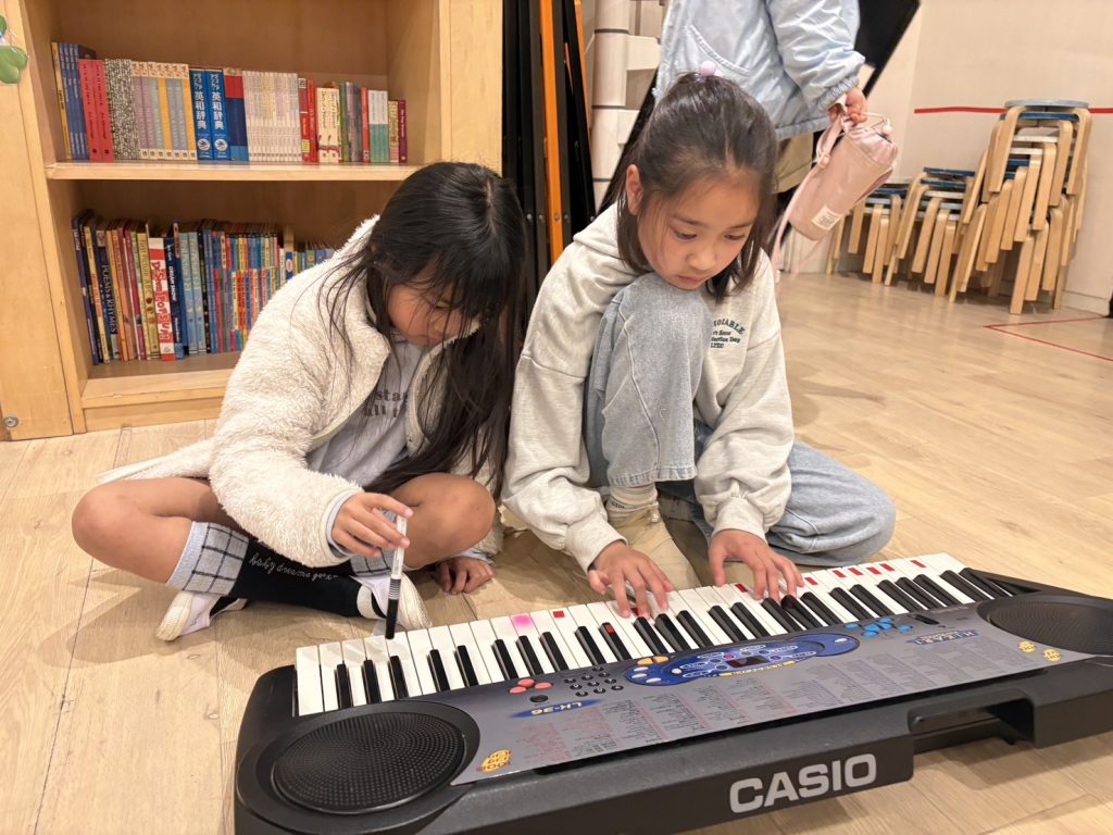 18時からの10分間は、みんなが楽しみにしているフリータイムです! 電子ピアノを奏でたり、カードゲームに熱中したり、お友達と英語でのおしゃべりを楽しんだりと、それぞれのスタイルでリラックスした時間を過ごしています。