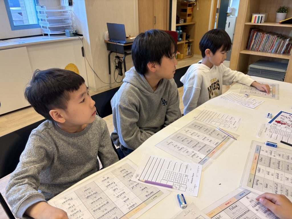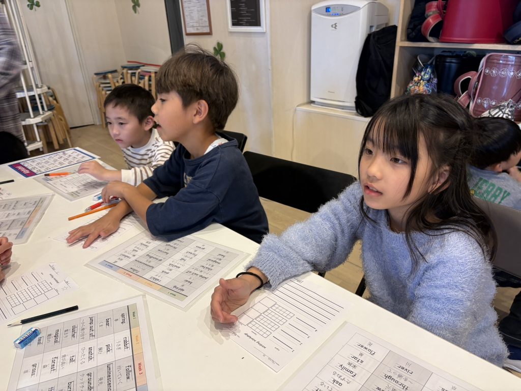 先生: Perfect! Got it? Let’s start the next word!(完ぺき!次の単語に行くよ!)